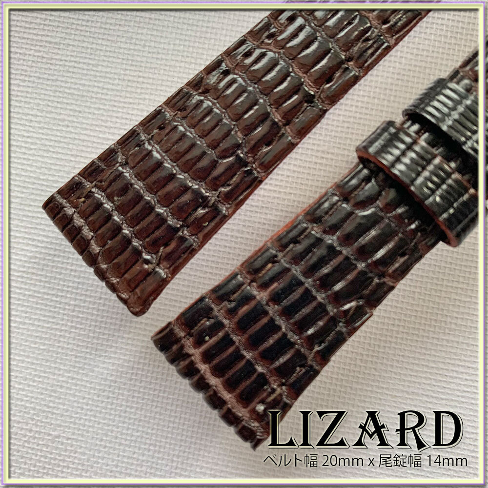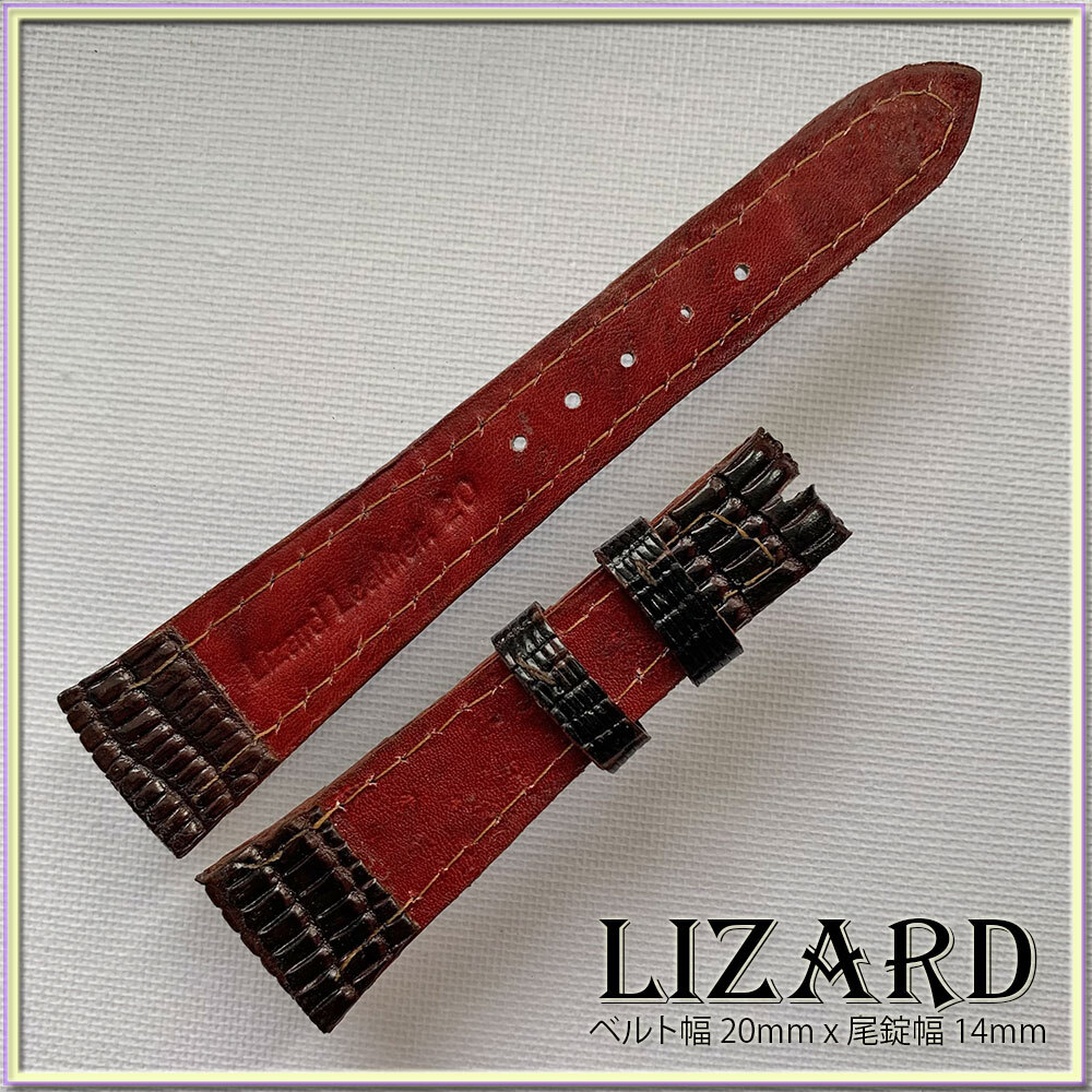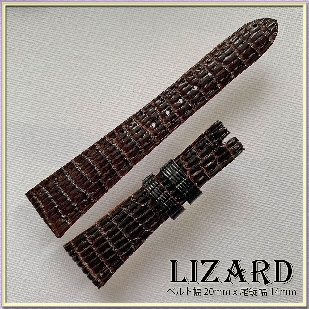 SALE!20mm リザード 本革 トカゲ革 高級ライン 天然模様 1点物 時計ベルト ブラウン HAND MADE 別注 LIZARD LINE バネ棒2本付