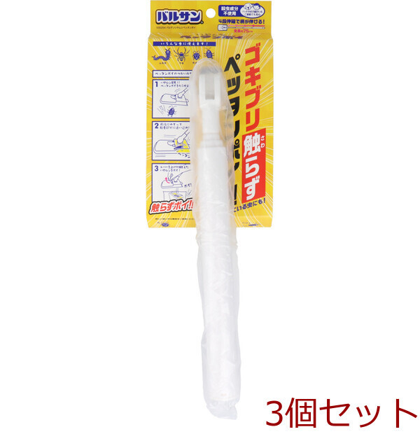 ゴキブリ触らずペッタンホイ! いろんな虫に使えます!触らずポイ! ・殺虫成分不使用なのでペットや小さいお子様がいるご家庭でも安心です。 ・ゴキブリなどのイヤな虫を触らずに駆除できます。 ・4段伸縮で柄が伸びます。 (最長約75センチ) ・強力な粘着面が捕まえたイヤな虫を逃がしません。 ・ムカデやカメムシ、クモなどにも使えます。 個装サイズ:110X355X55mm 個装重量:約158g 内容量:本体1本、捕獲カートリッジ1枚 製造国:中国 【発売元:レック株式会社】 【使用方法】 (1)本体のレバーを上げ、カートリッジを取り出します。 開いて粘着シートのはくり紙をゆっくりはがし、再び箱状に組み立てます。 (2)組み立てたカートリッジを本体にセットします。 (3)本体を害虫にかぶせ、前後ににふり害虫ををカートリッジの中に追いやります。 ★カートリッジの捨て方・外し方 ・レバーを上げるとカートリッジが外れます。 ・用意した袋に捕獲カートリッジを入れ、しっかり閉じてください。 【使用上の注意】 ★本品は害虫捕獲のための用具です。 本来の用途以外には使用しないでください。 ・必ず専用の捕獲カートリッジを取り付けてから使用してください。 ・はくり紙の剥がし忘れにご注意下さい。 ・殺虫剤で駆除した虫は粘着面に付きにくくなる場合があるので、害虫の落下にご注意ください。 ・無理な力が加わると、破損する場合がありますので軽く滑らすようにご使用ください。 ・屋外のアスファルトなどに押し付けると本体にキズが付く恐れがあります。 ・砂や砂利が多い場所、草むらでは使用できません。 ・壁や天井で使用する際は、照明器具や家具家電等にあたらないようにご注意ください。 ・ケースが汚れたときは、水または中性洗剤で洗ってください。 ・強い力でこすりつけると、対象面をキズつける場合がありますのでご注意ください。 ・小児やペットがもてあそばないように注意してください。 ・誤って食べたりしないよう注意してください。 ・粘着面には触れないでください。 誤って粘着面が人体、ペットに付着した場合は、食用油などで丁寧に拭きとり、石けんや洗剤を使ってよく洗い流してください。 ・火気付近、直射日光の当たる場所、高温になる場所を避け、小児やペットの手が届かない涼しいところに保管してください。 ・廃棄時は、各自治体の定めによる方法に従って処理してください。 注意事項 ※予告なく成分・パッケージが変更になることがございます。 予めご了承ください。 *予告なく成分・パッケージが変更になることがございます。予めご了承ください *ダンボールを使用して発送する場合には、入数以下の個数の場合、 中古ダンボールを使用する場合があり、ご注文の商品とは異なるダンボールになる場合があります。 あらかじめ、ご了承ください。 |