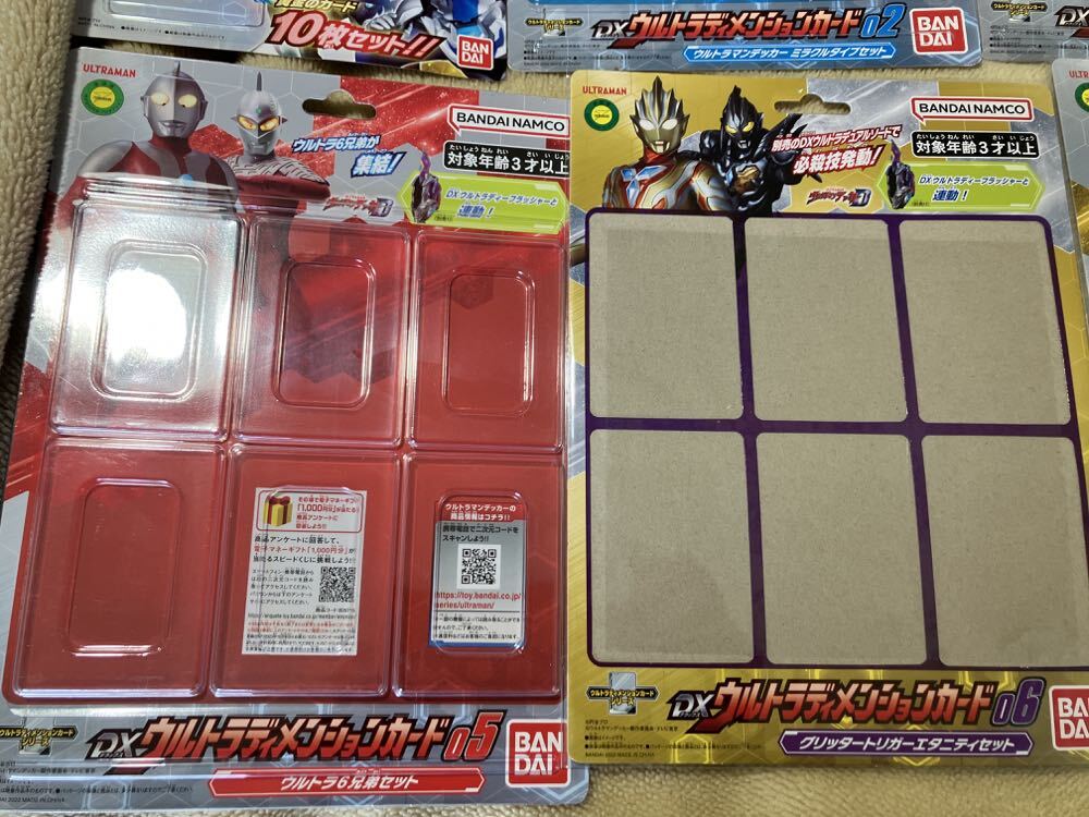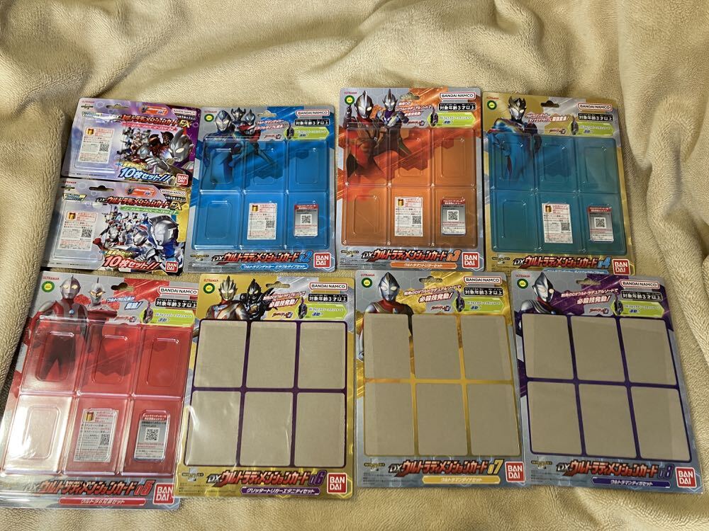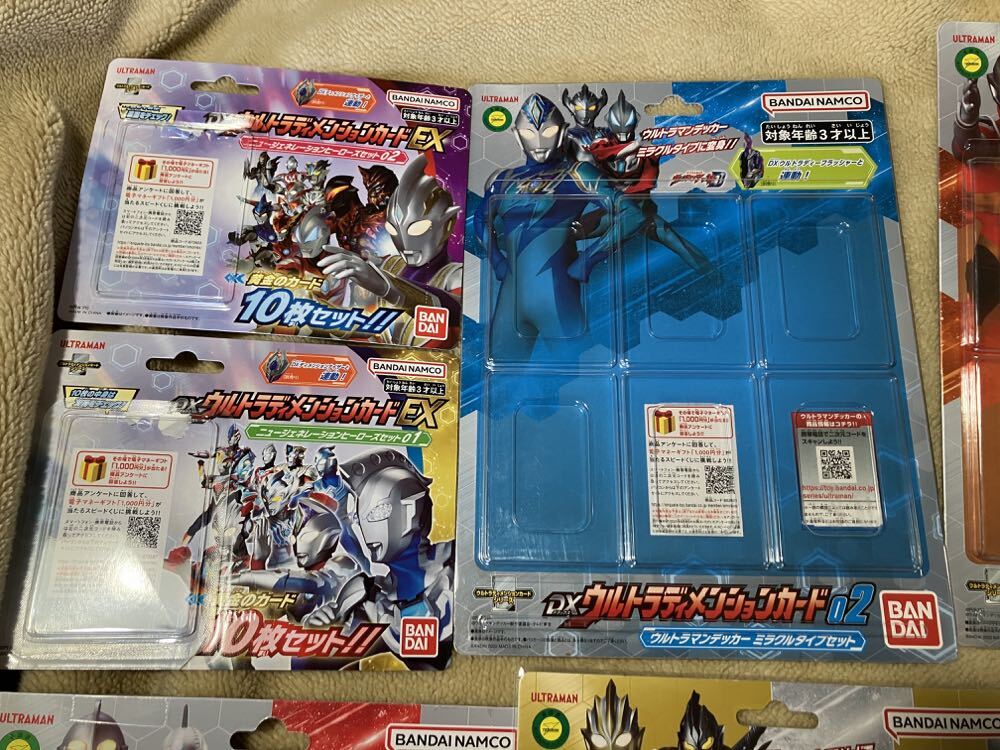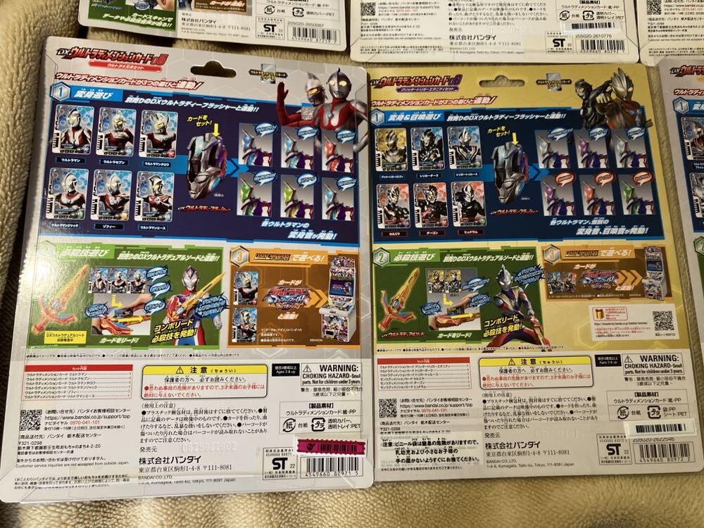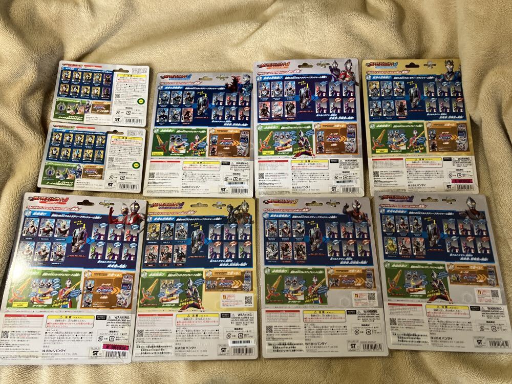 委託品で預かっています。ウルトラマンの玩具・ウルトラディメンションカード、1〜8のパッケージです。内容のカードはありません。