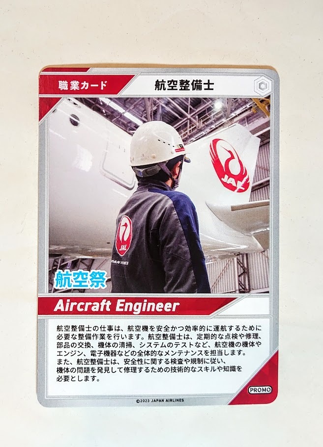 職業カードはエアクラフト・エンジニアと呼ばれる航空整備士の仕事内容を紹介しています。