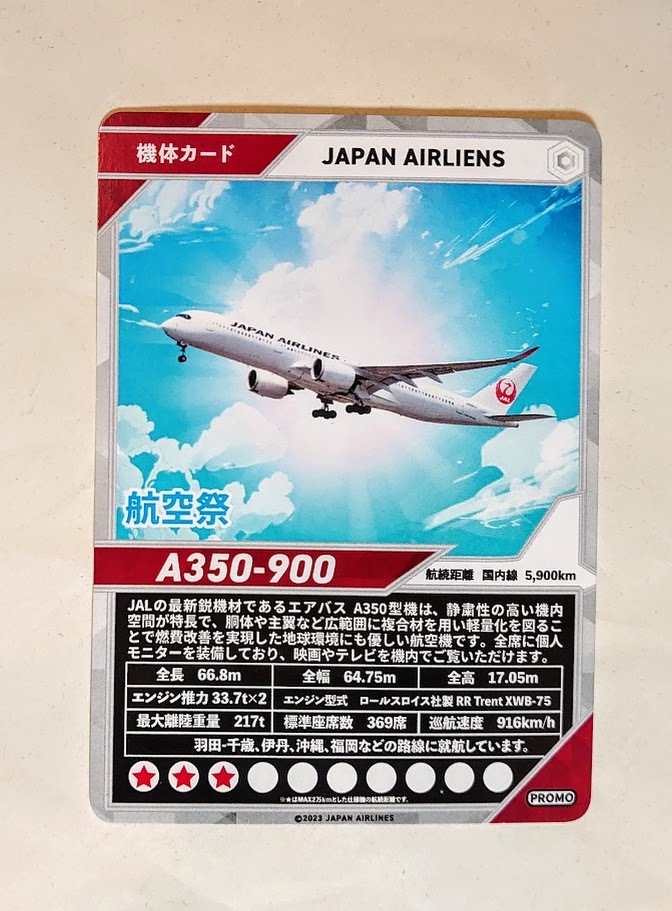 機体カードは3枚で、B737-800及びB767-300ER及びA350-900の3機種です。