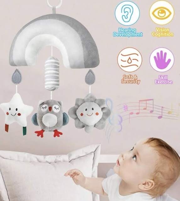 ■新品■ベビートイ 吊り下げ 【虹 ふくろう ほし 花】メリー ベビーカー ベッド ラトル かわいい