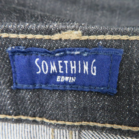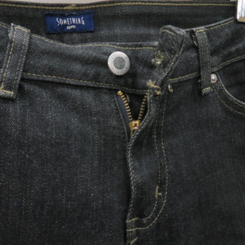 サムシング something デニムパンツ ジーンズ テーパードパンツ ロング丈 無地 29 黒 ブラック /YK21 レディース
