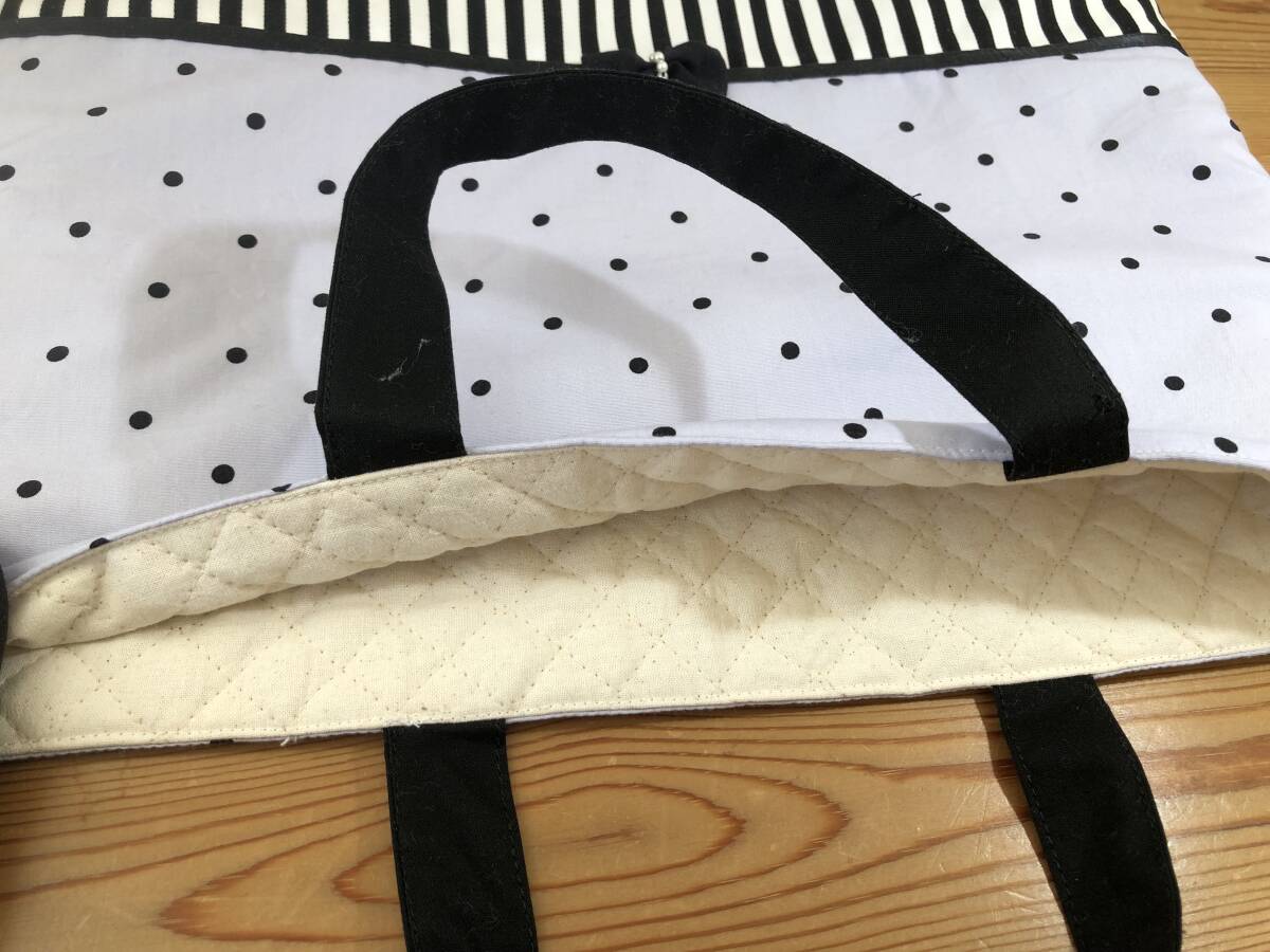 持ち手は黒の無地に厚手の接着芯をお貼りしました。