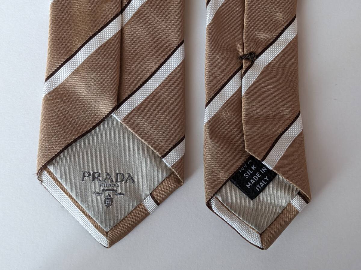 PRADA/プラダ◇ネクタイ レジメンタル ストライプ 金 茶 ベージュ ゴールド ブラウン