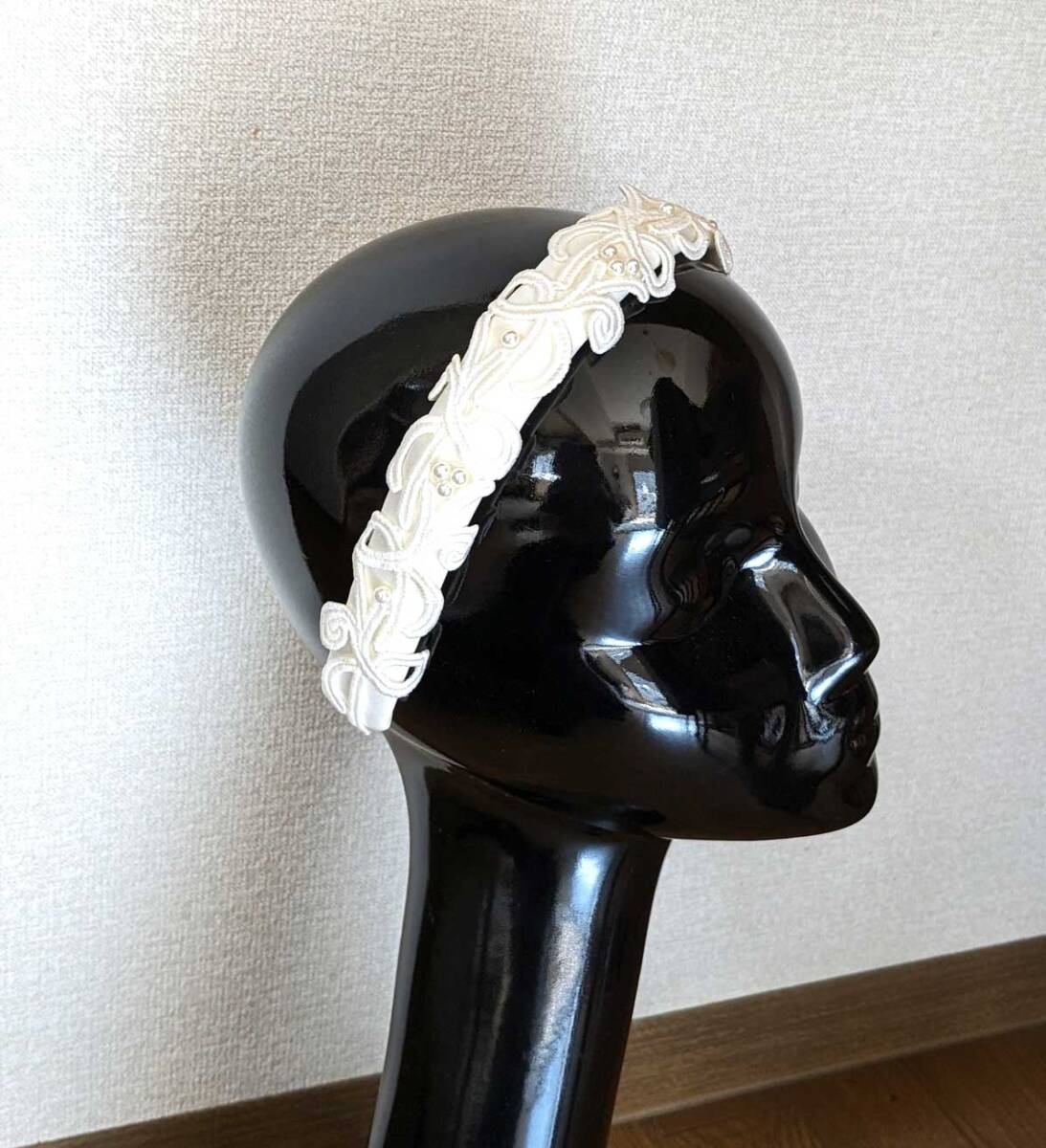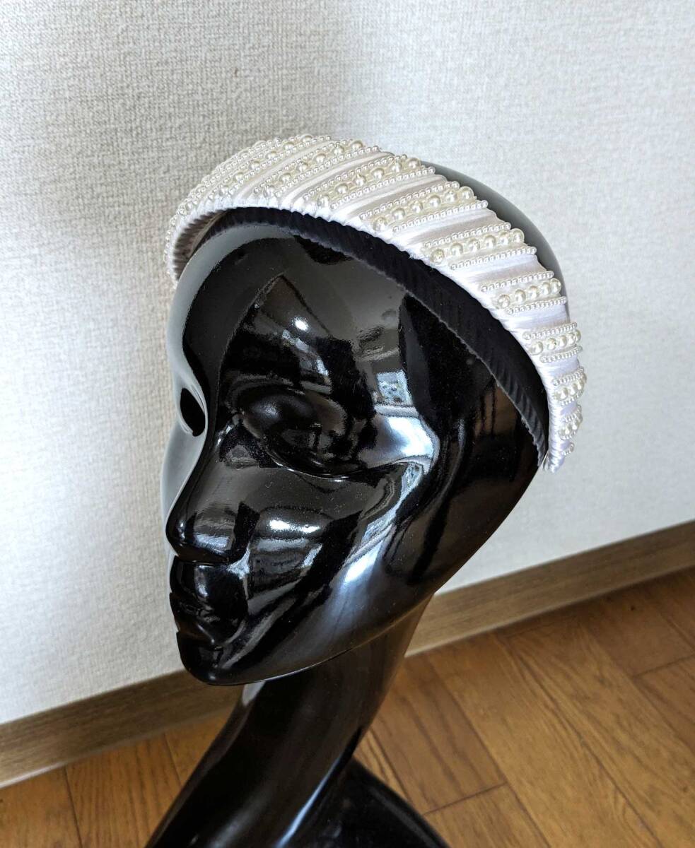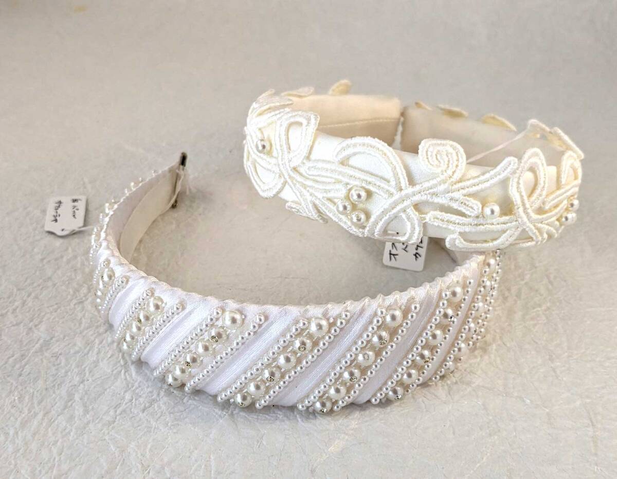 ■is_013 新品 手作り ハンドメイド カチューシャ 髪飾り 白 オフホワイト パーティ 発表会 2点 セット ヘアバンド 布 レース パール風