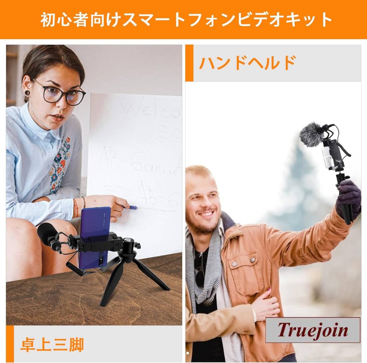 スマートフォンマイク・ビデオキット・ミニ三脚付 ガンマイク カメラマイク スマートフォン用オーディオ+ビデオを組合せ簡単制作