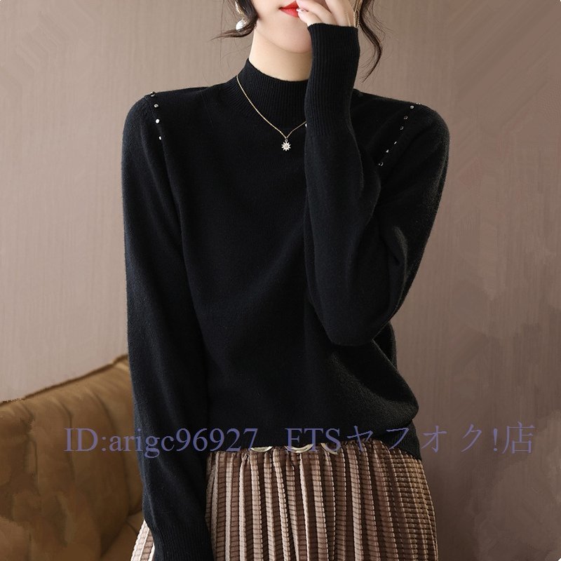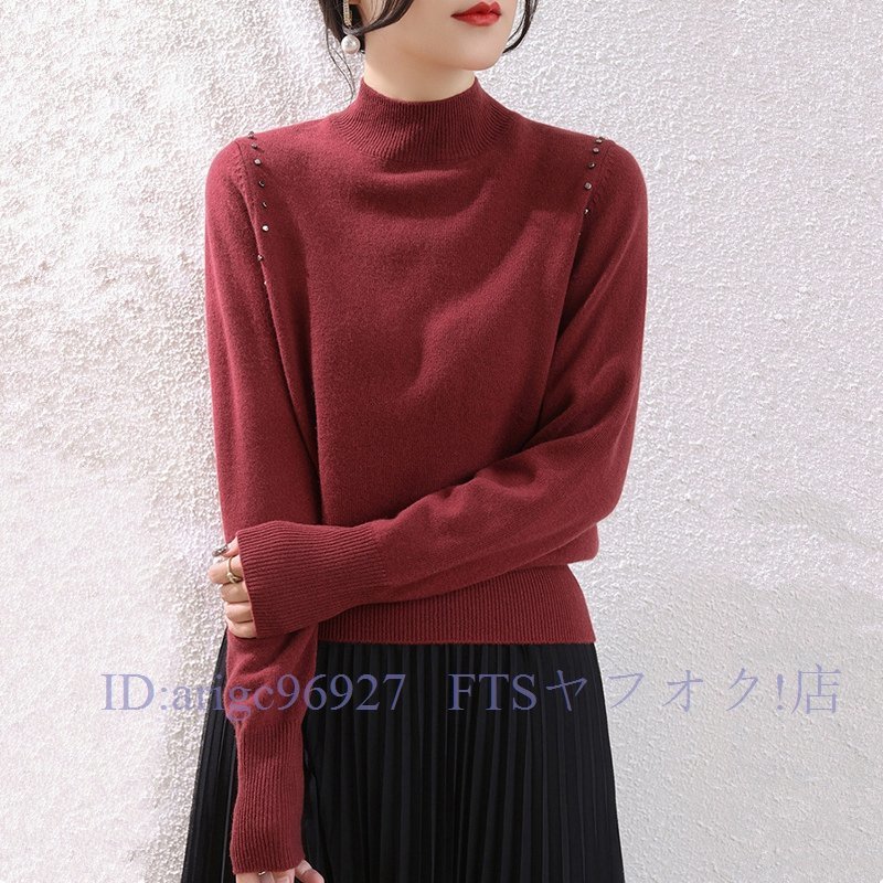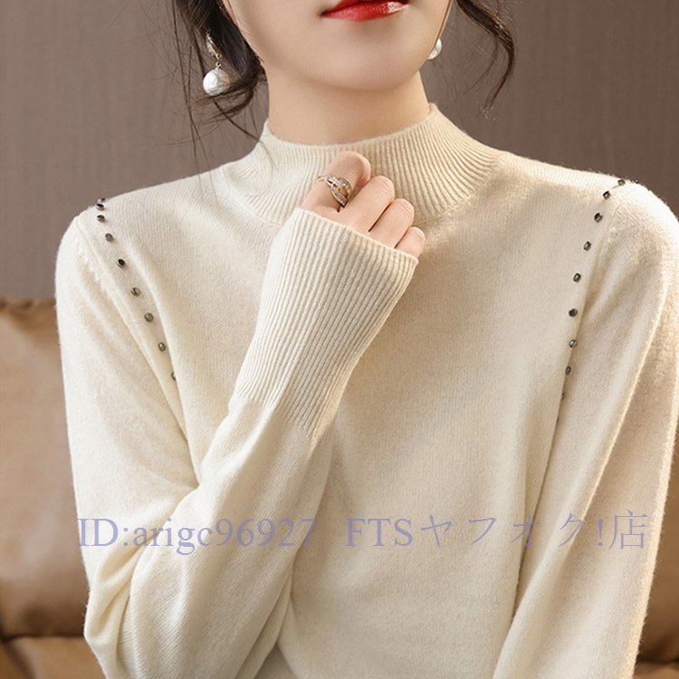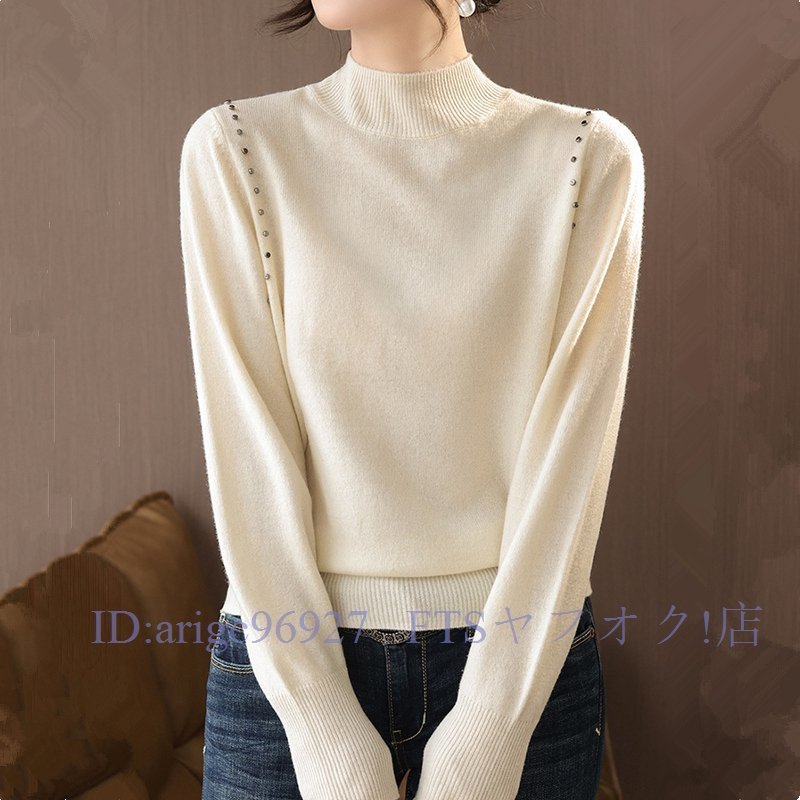 A6521☆新品秋冬 上質おしゃれ 柔らかい暖かい ウール ハイネック 無地 レディース トップス ニットセーター F ベージュ