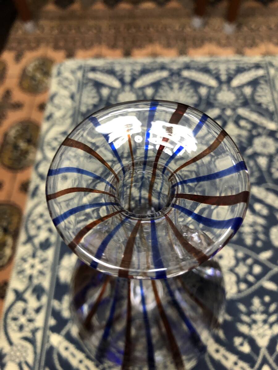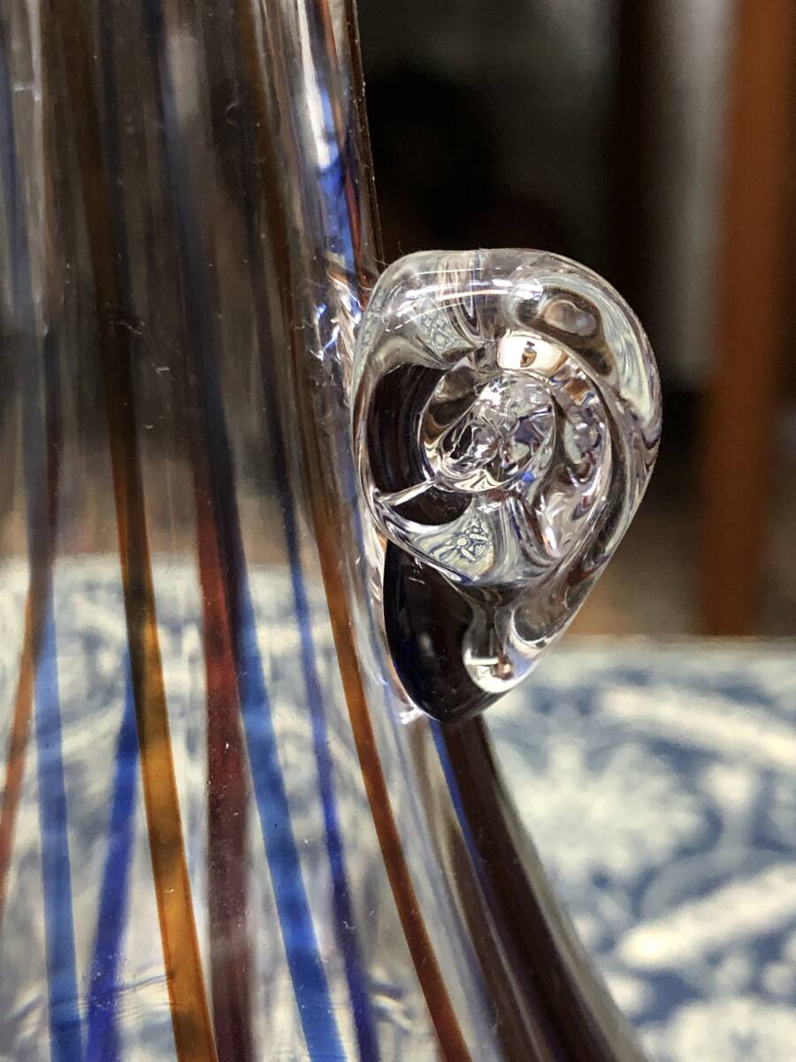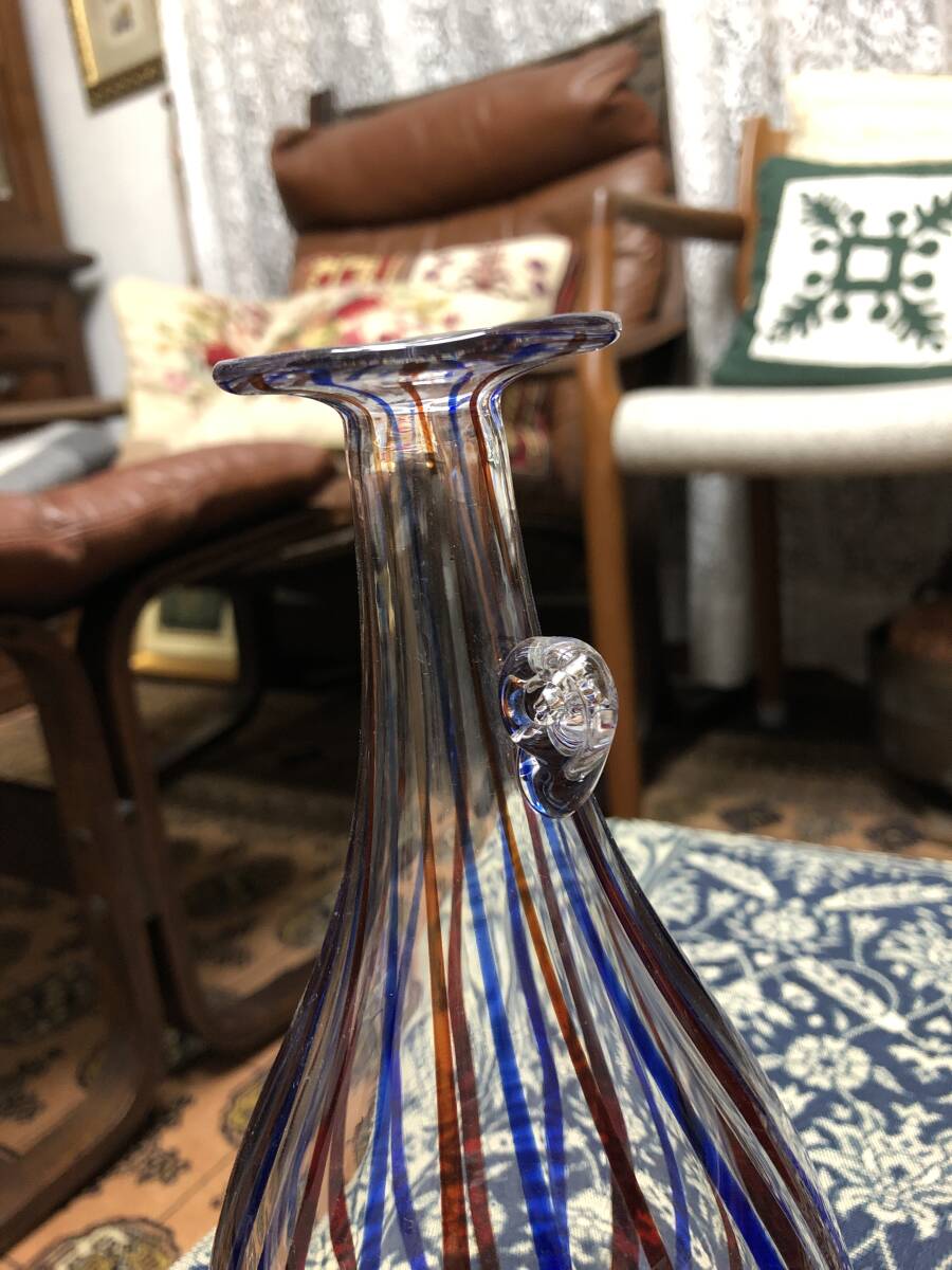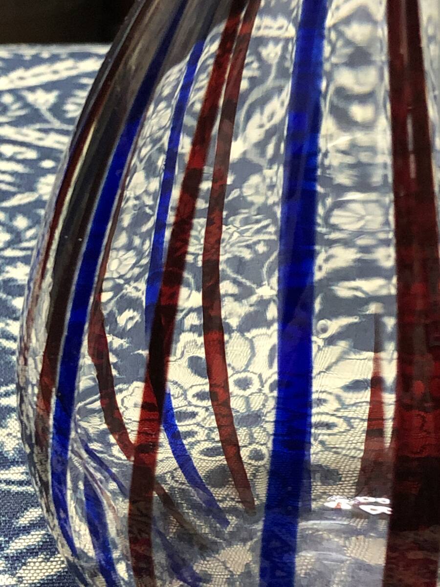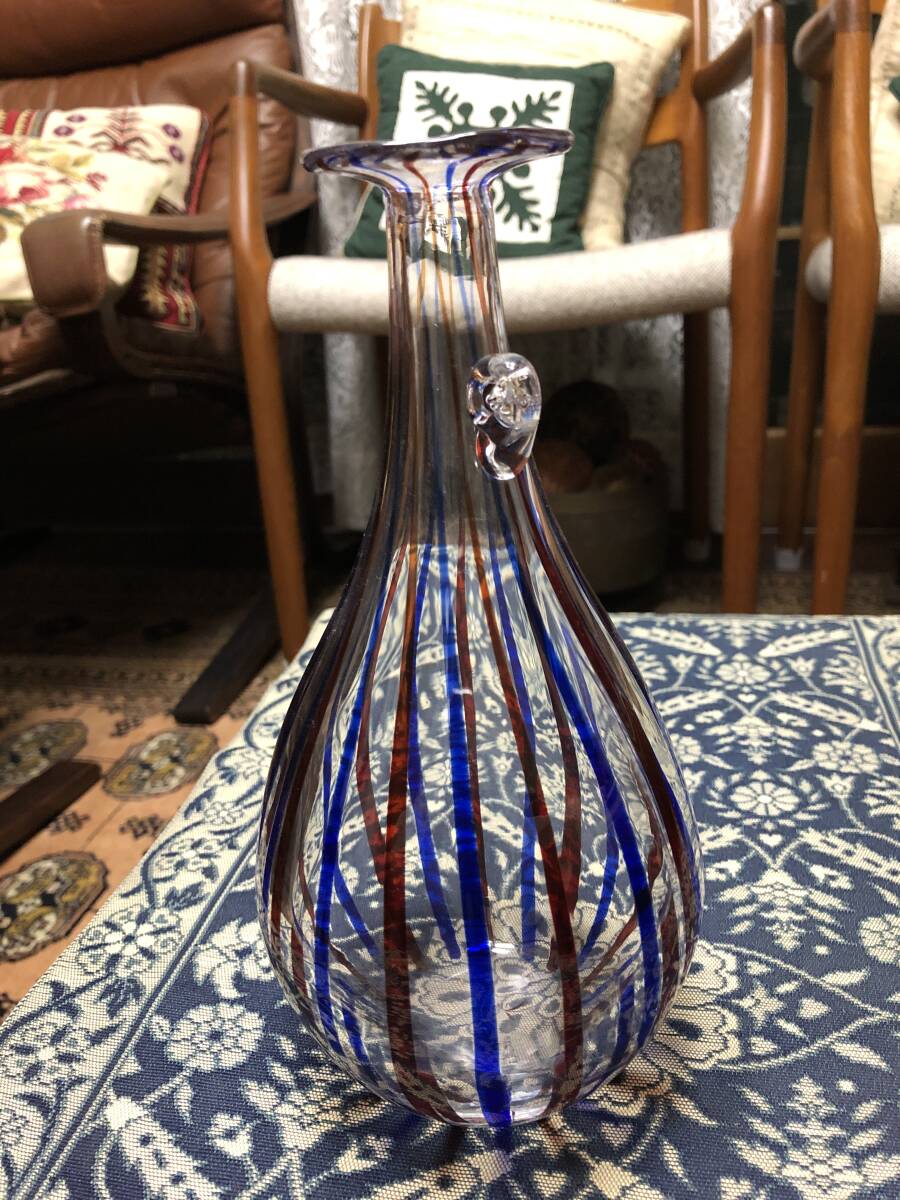 工芸ガラス 花瓶 クラフトガラス 2色のストライプ 高さ22.3cm
