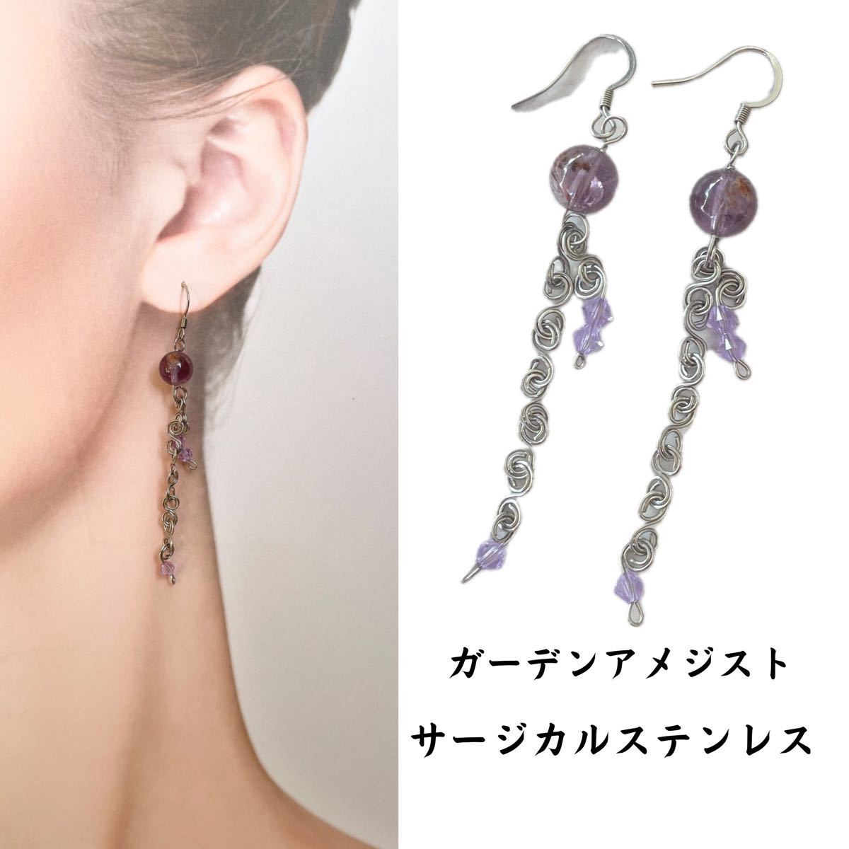 ハンドメイド、オリジナルデザインの天然石ピアスです。