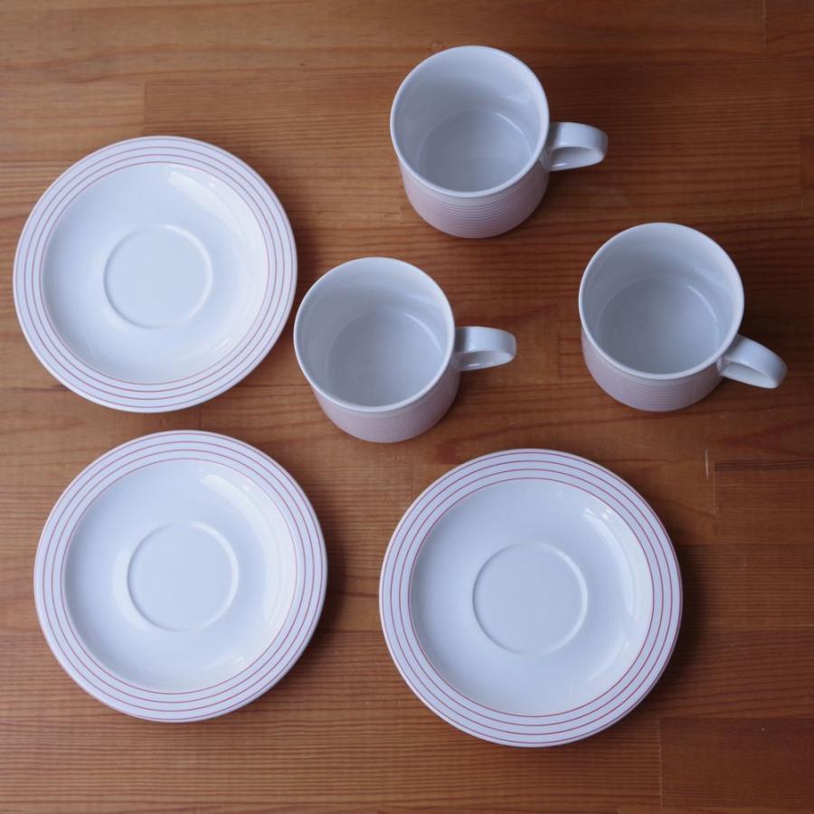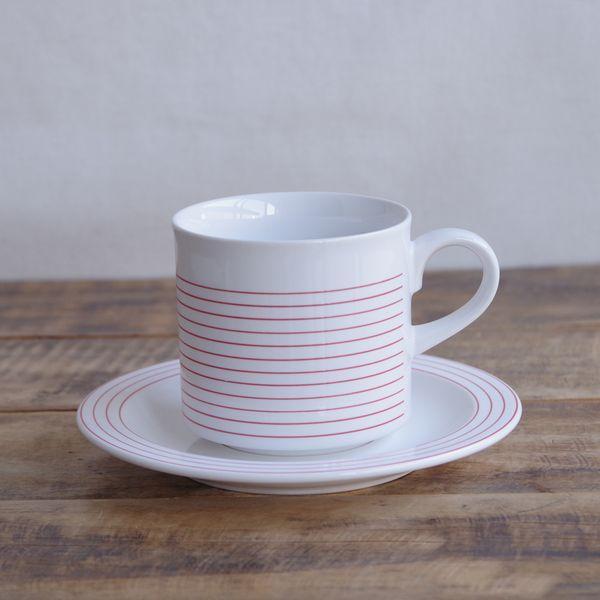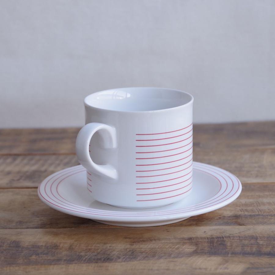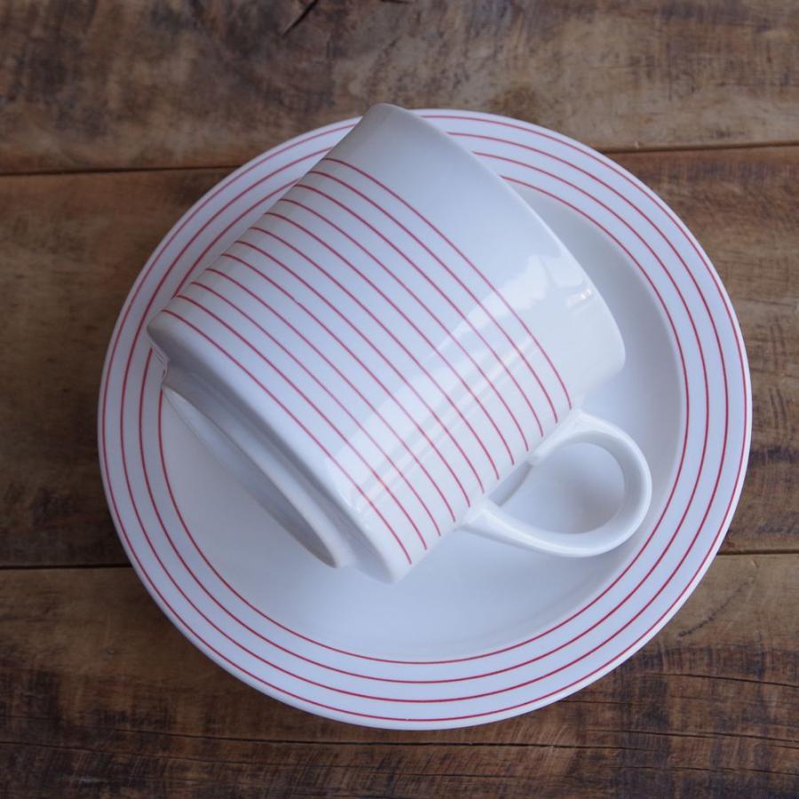 イギリス ヴィンテージ 食器 コーヒーカップ ソーサー ホーンジー HORNSEA リニア Linear 赤 ボーダー#231123-1~3 シンプル モダン