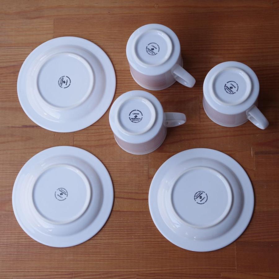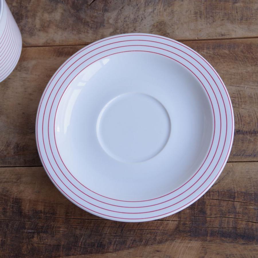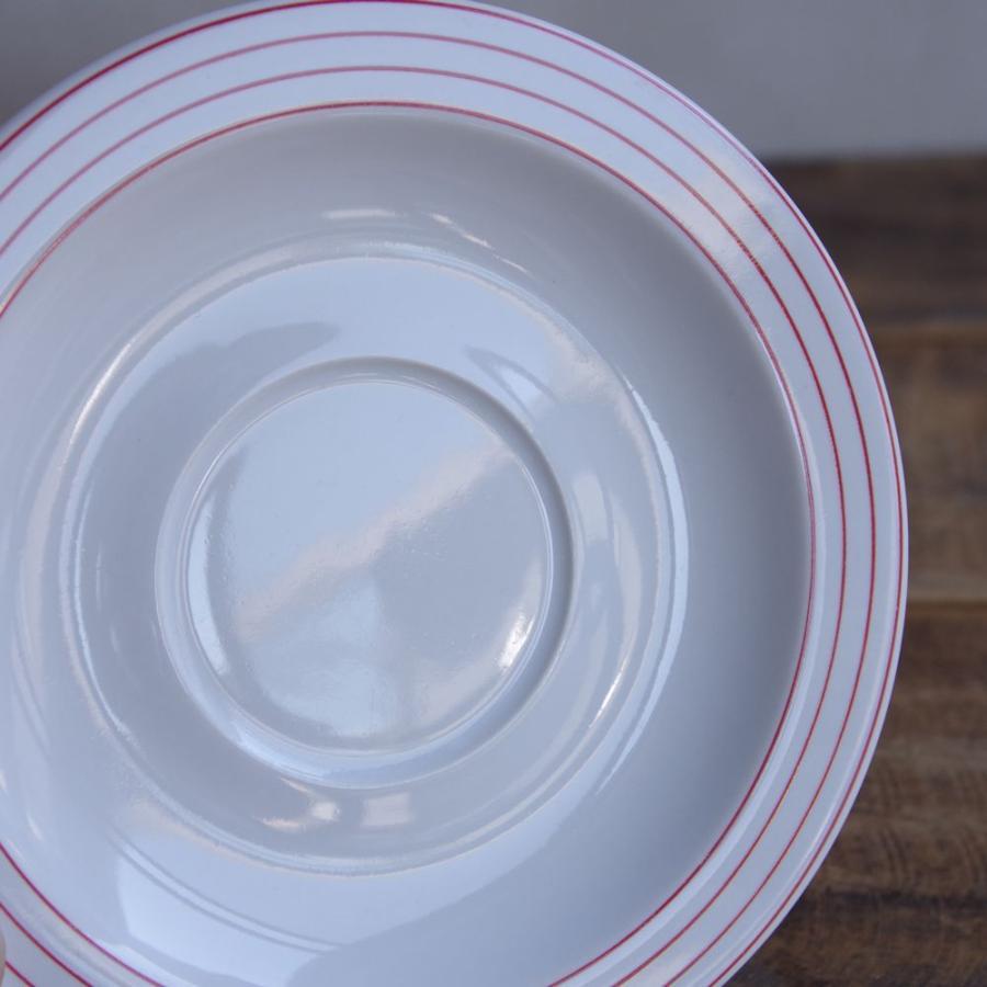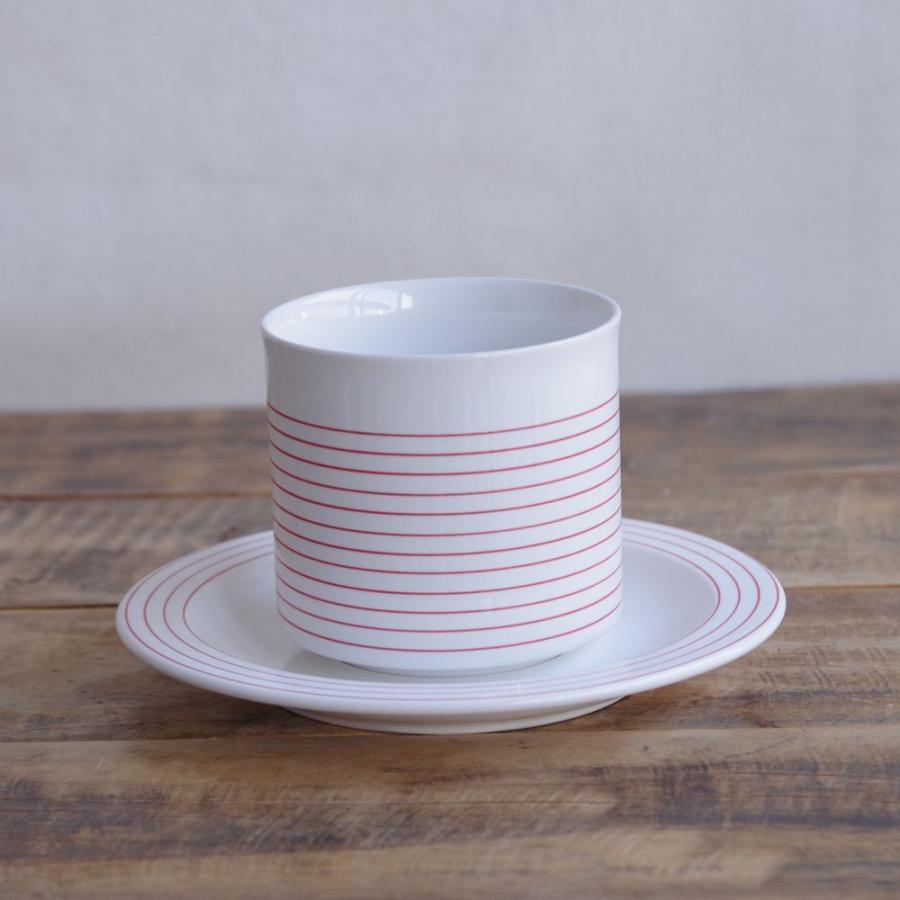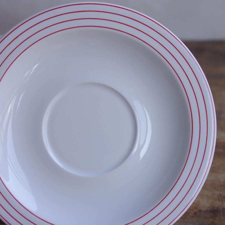 カップ側面とソーサーのリム部分に、細い赤いラインが入っています。