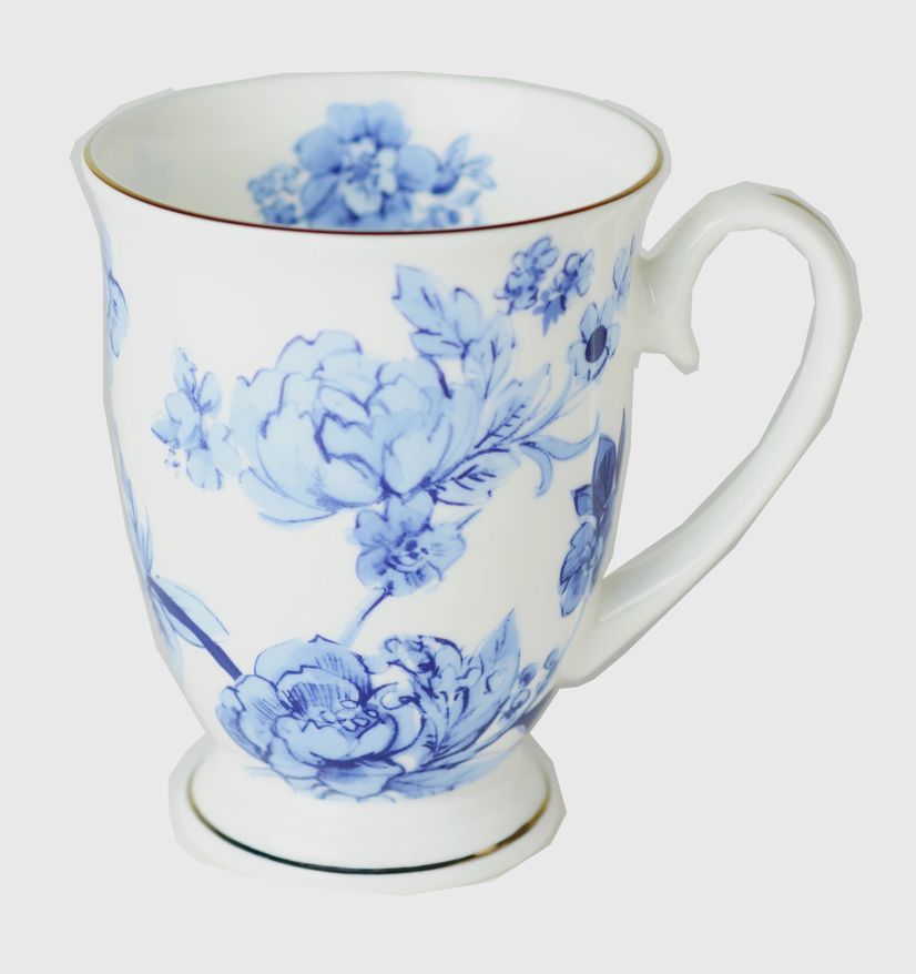*新品*レンジ対応*マグカップ*陶器製*ローズ*バラ*ゴージャス*ブルー*エレガント*ロイヤルアーデン*