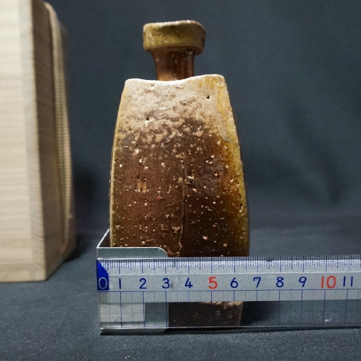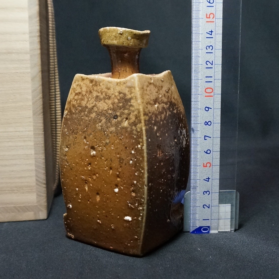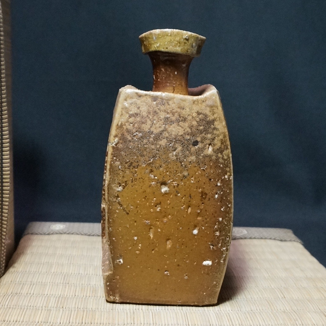 備前焼界のみならず世界に名高い異色の備前焼作家 隠崎隆一先生の近作の備前酔器です。一目で隠崎先生と分かる大胆な箆使いによって作品全体が削り出されており、立体としての面白さを追求したデザインはいつまで眺めても飽きません。穴窯らしい胡麻が勢い良く吹き付けられた景色となっており、備前特有の色と胡麻の形式がぐるりと取り囲み飽きさせません。