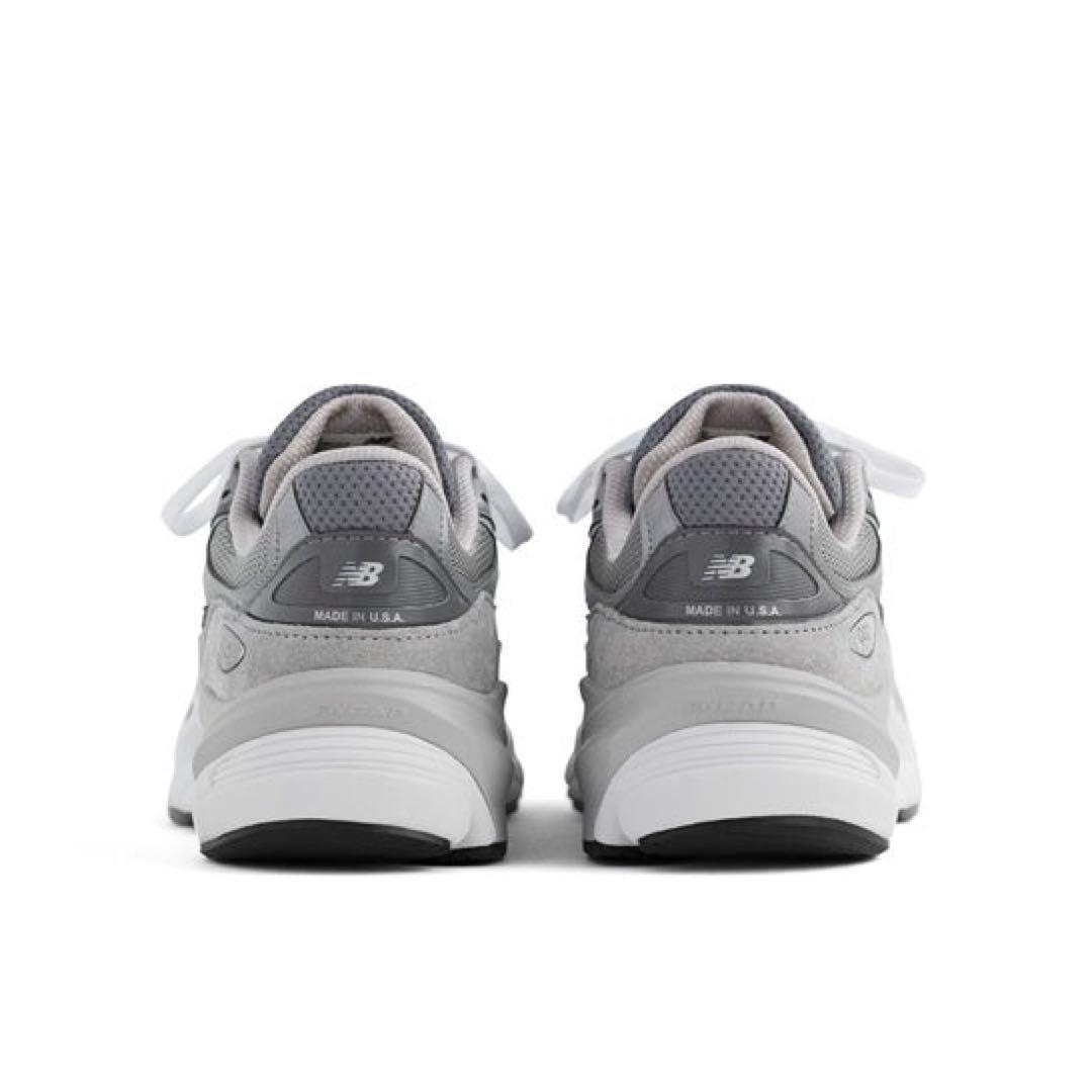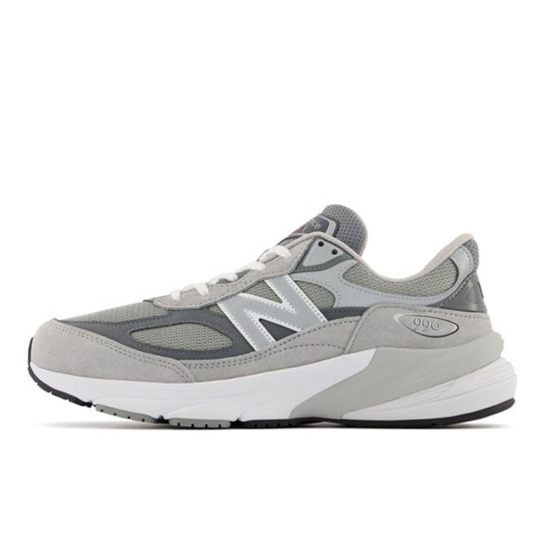 更新された990v6のデザインでは、従来のミッドフットサドル(足の甲を横断するパーツ)が不要になり、ピッグスキンスエードとシンセティックレザーのオーバーレイが、メッシュアッパーの上をかかとからつま先まで流れるように配されています。