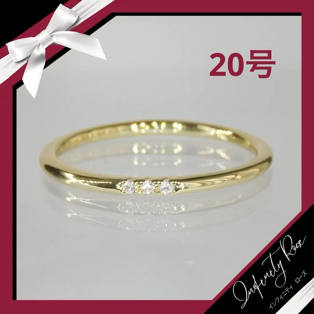 (R010G)20号 18KGPゴールドのシンプル3粒細リング大人の指輪 リング