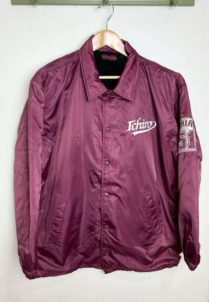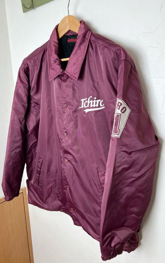 NISSAN ニッサン イチロー コーチジャケット スタジアムジャンパー 大きめ ◆ ナイロン100 レッド系 ロゴ刺繍 古着 メンズ 秋冬 になります。