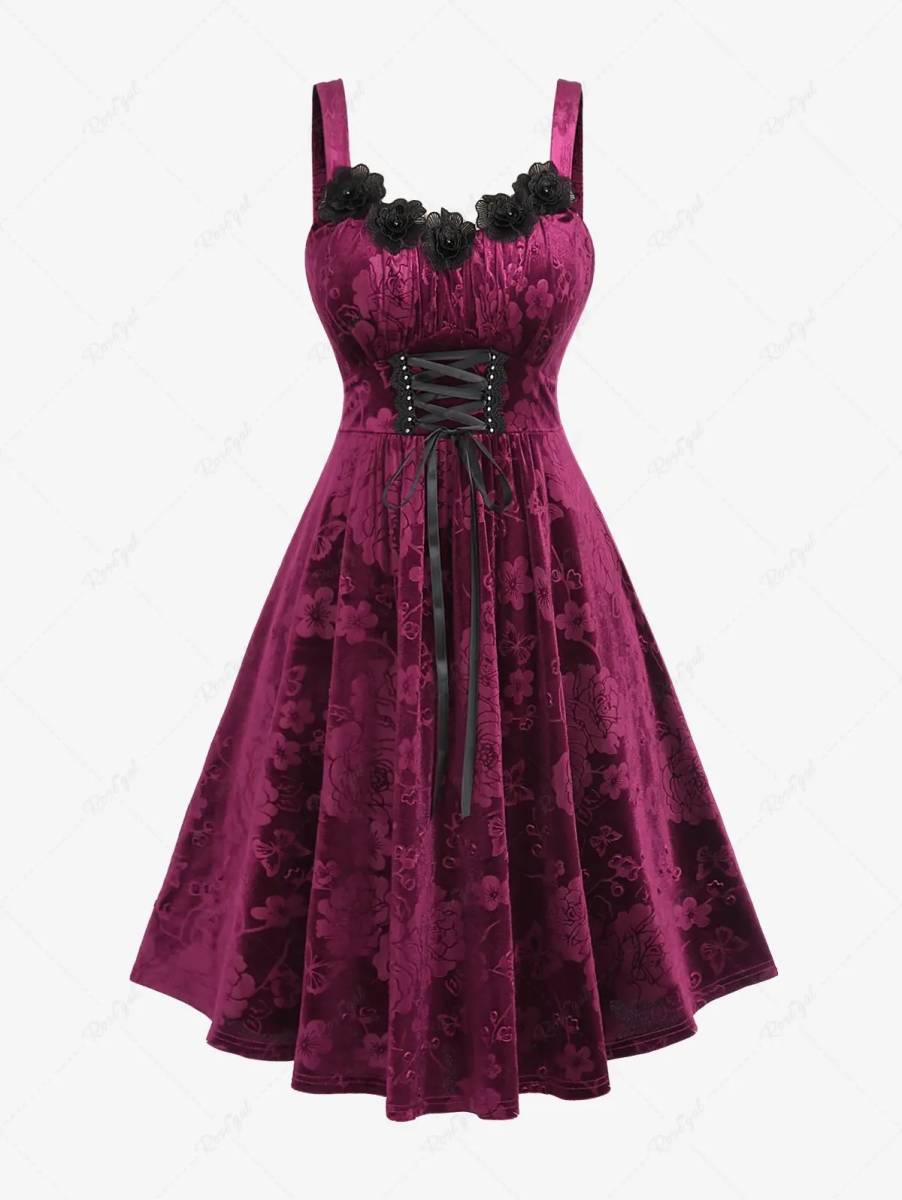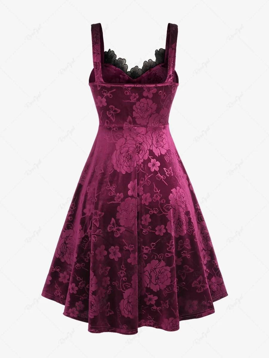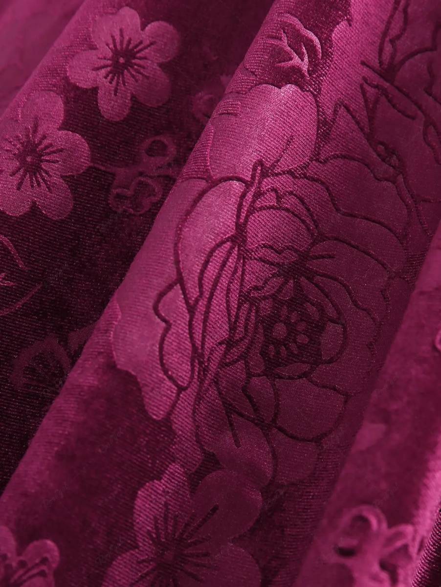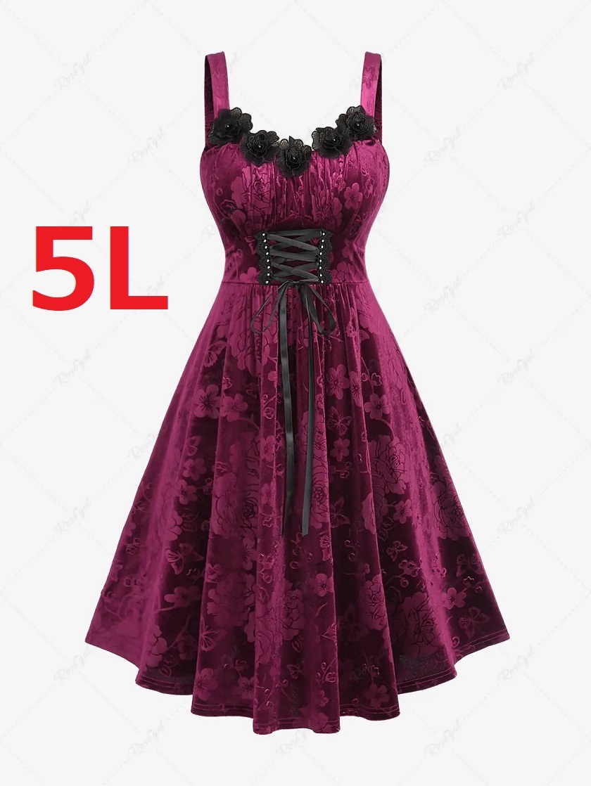 即納 新品 大きいサイズ5L(~6L.7L)超ゆったりエレガントエンボス花蝶柄ベロアドレスワンピース パーティ イベント 結婚式 ディナーショー