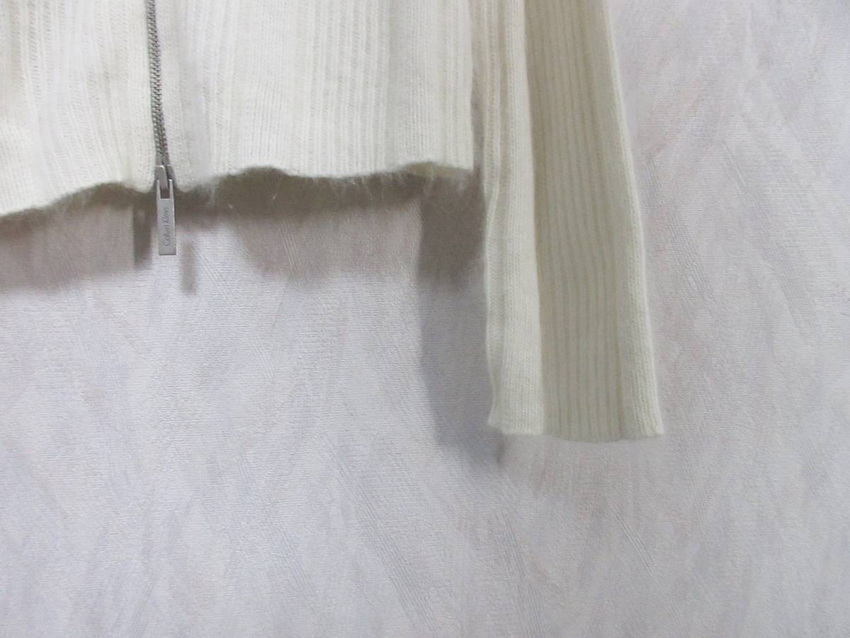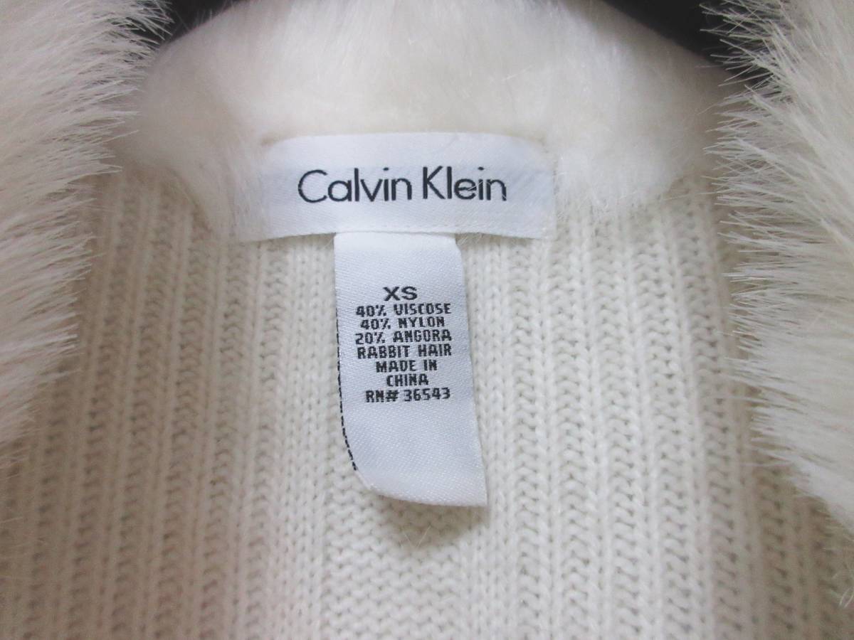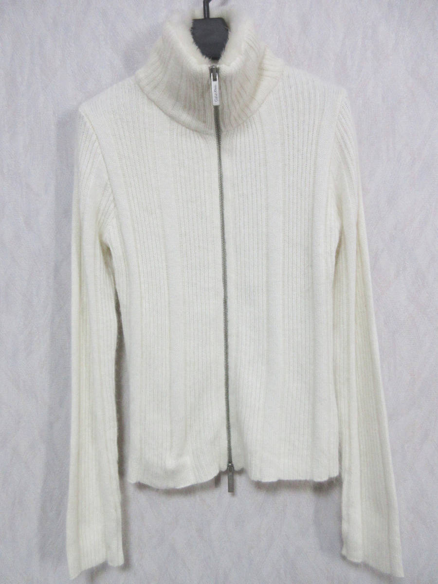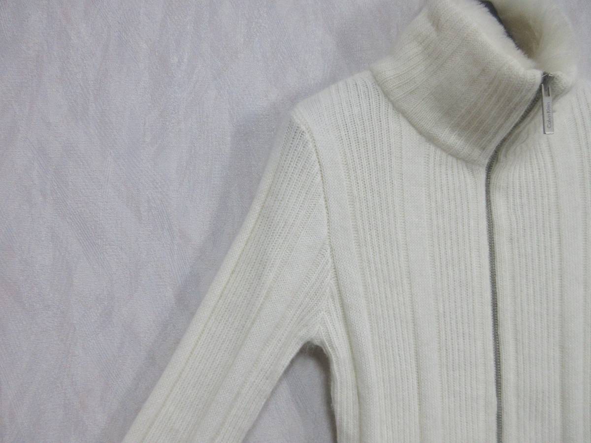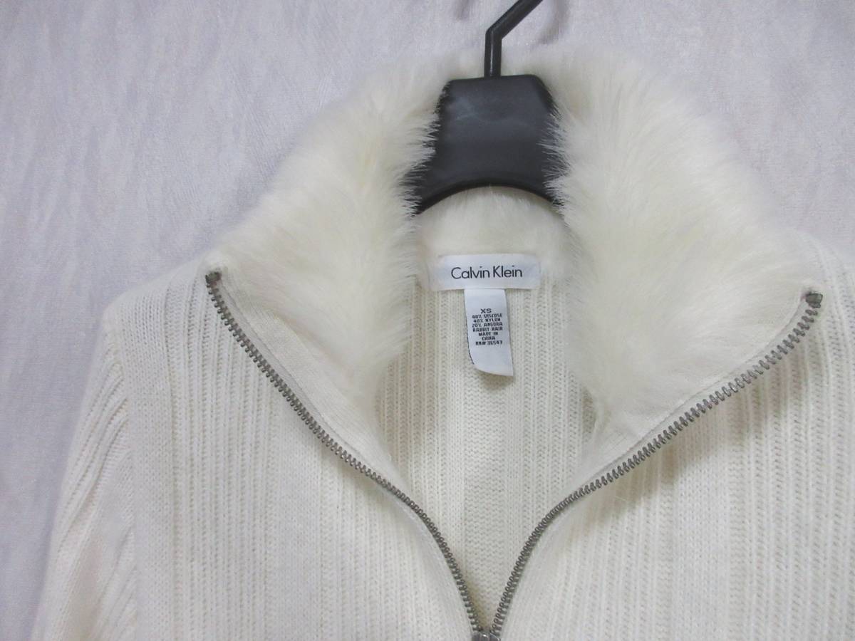 カルバンクライン Calvin Klein ラビットファー ジップアップ ニット オフ白 XS 亥3964