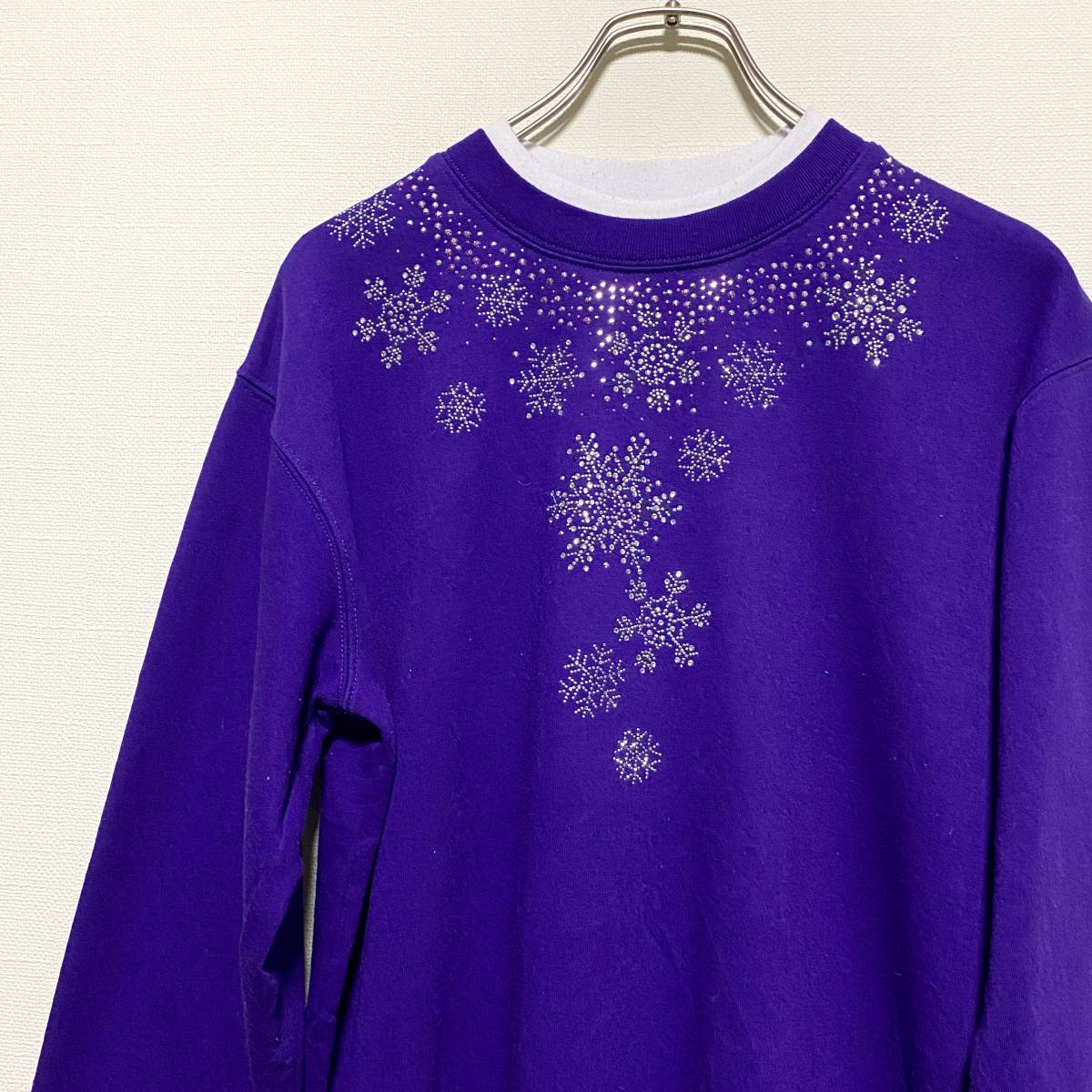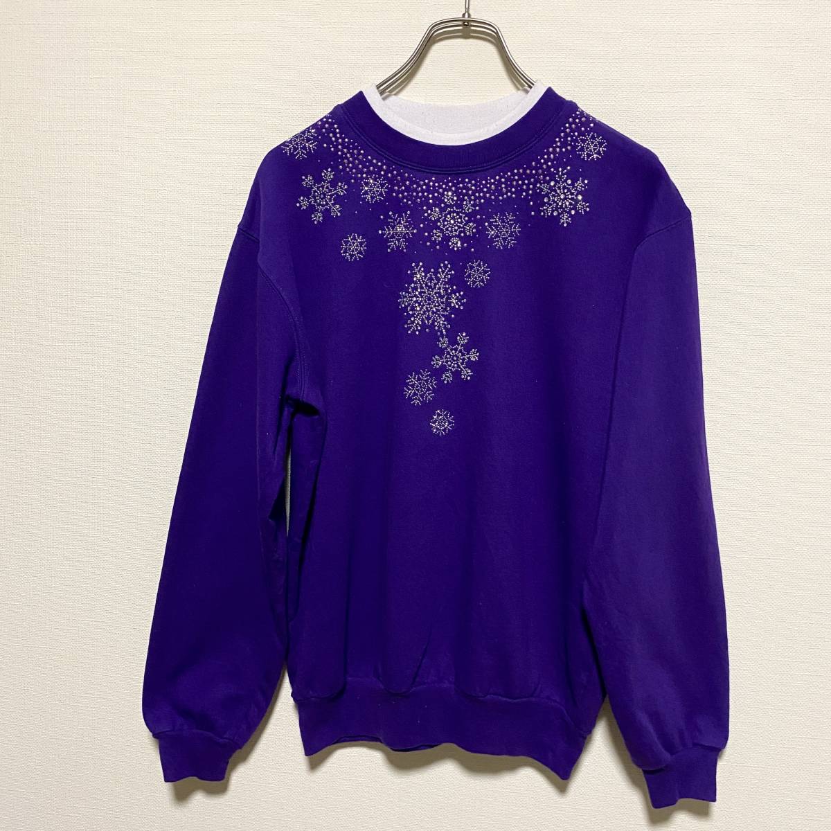 アメリカ古着 雪柄 トレーナー スウェット レトロデザイン ヴィンテージ ゆるふわ Sサイズ 【R95】