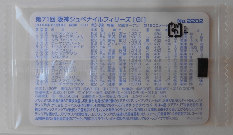 ◎まねき馬カード No.2202 第71回阪神ジュベナイルフィリーズ(未開封)レシステンシア