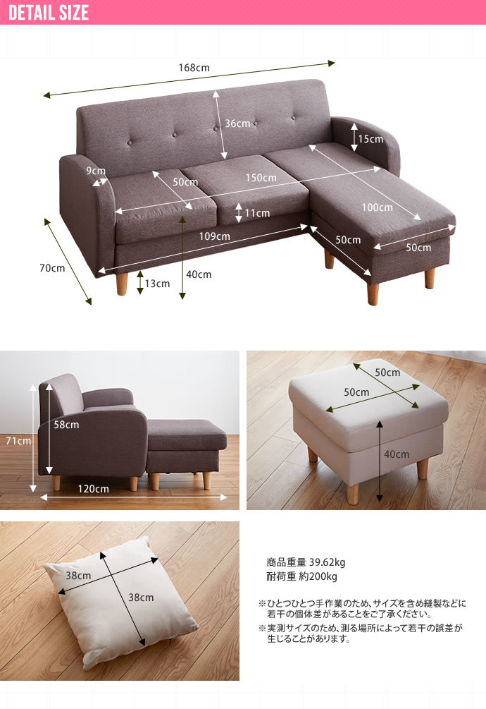 お部屋に合わせて形が変えられるの3人掛けカウチソファ