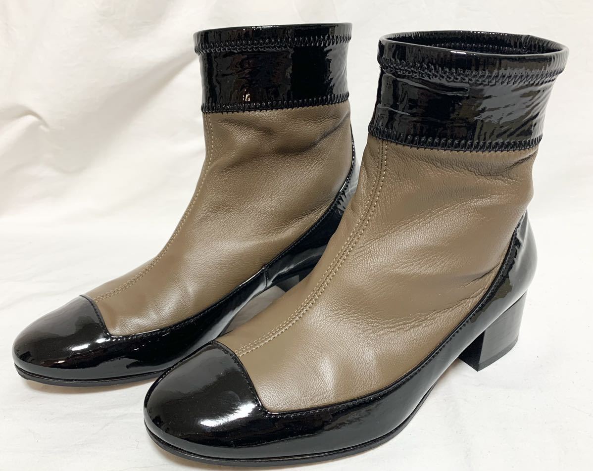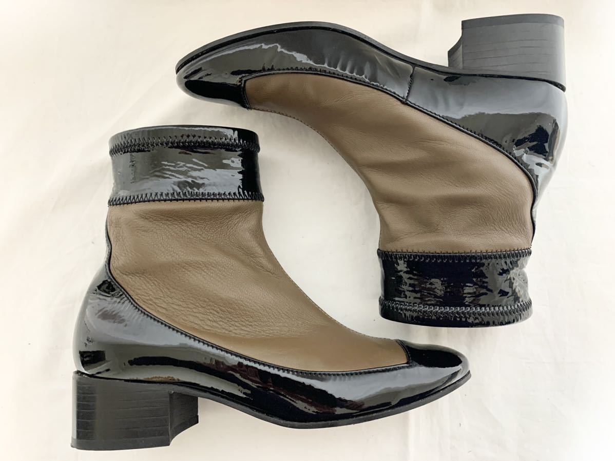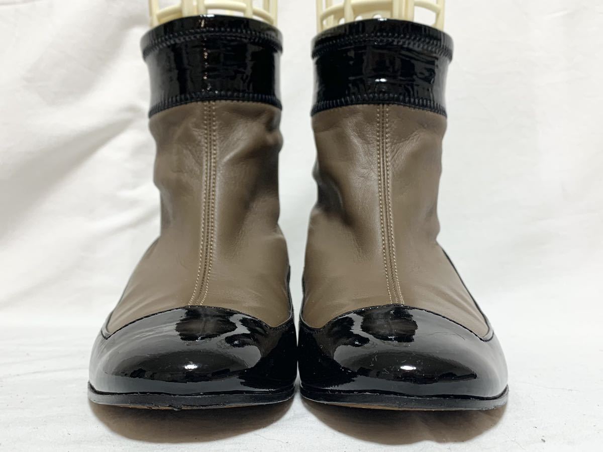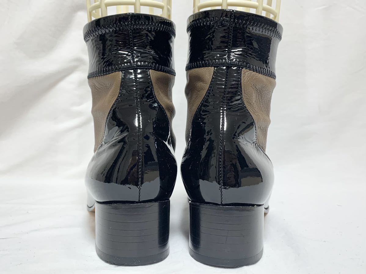 希少 超美品 ロエベ LOEWE レザー エナメル パテント ショート ブーツ 靴 レディース シューズ 35 21.5~22cm前後 黒 焦げ茶 バイカラー