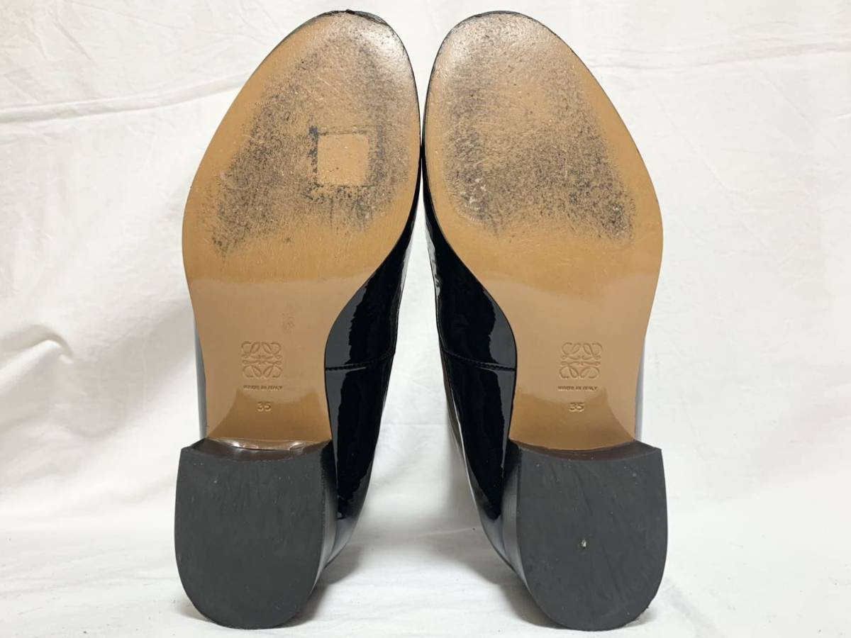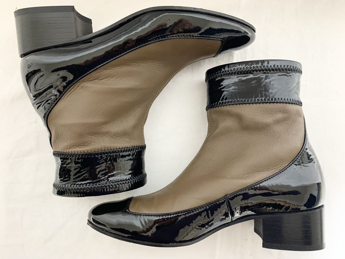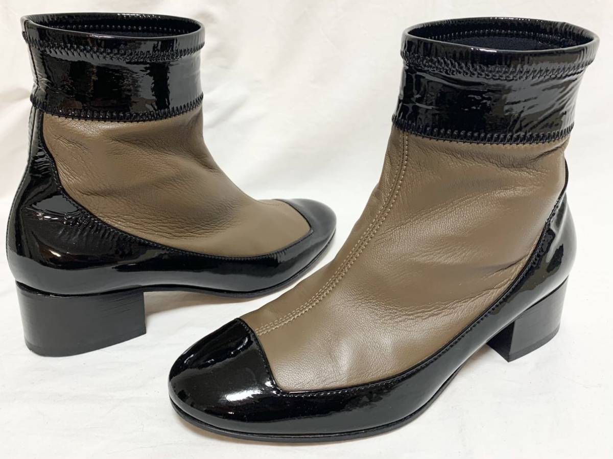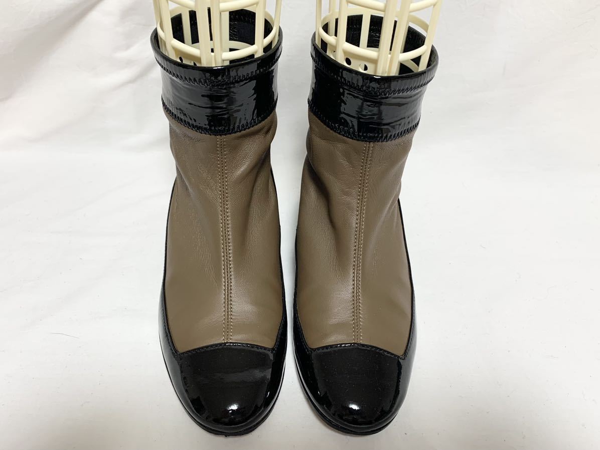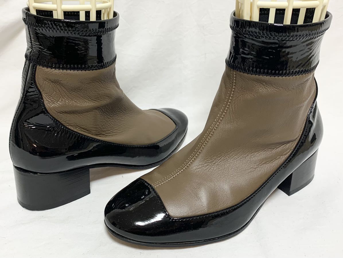 希少 超美品 ロエベ LOEWE レザー エナメル パテント ショート ブーツ 靴 レディース シューズ 35 21.5~22cm前後 黒 焦げ茶 バイカラー