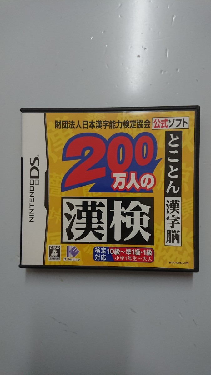 DSソフト 財団法人日本漢字能力検定協会公式ソフト 200万人の漢検 とことん漢字脳 中古です。ソフト、取説、ケースの出品です。中古ですので傷あります。発送は定型内270円サイズです。中古ですのでノークレムノーリターンです。