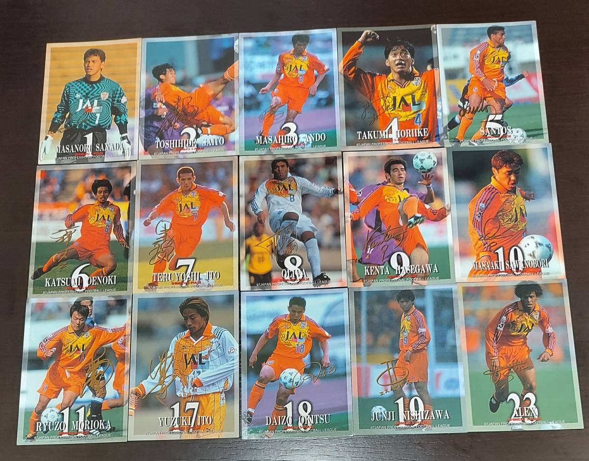 〇Jカード97清水エスパルス15枚コンプリート 真田雅則 斉藤俊秀 堀池巧 サントス 大榎克己 伊東輝悦 長谷川健太 沢登正明 森岡隆三等