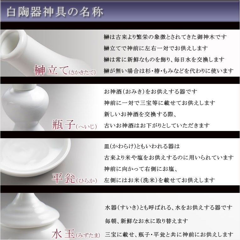 神具【白陶器神具7点セット:サイズミニ】神棚 祖霊舎 神徒壇 御霊舎 御霊代 神札 神社 神道