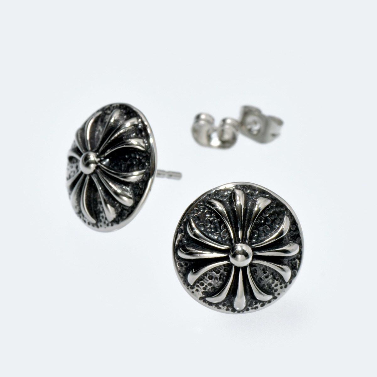 | 人気のクロス(十字架)モチーフのステンレスピアス。シンプルだけど、存在感のあるラウンド型です。※当商品は1個づつ販売の「バラ売り商品」です、ペアではございません。 |