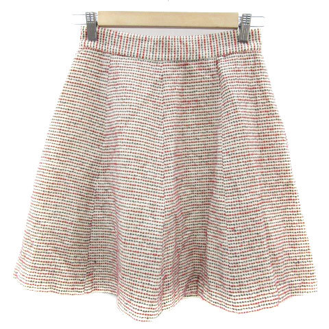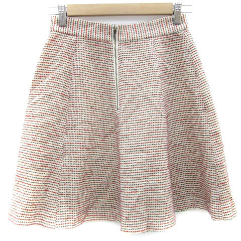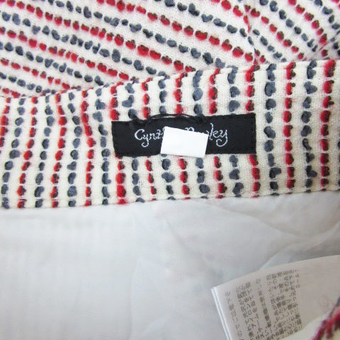 シンシアローリー CYNTHIA ROWLEY フレアスカート ひざ丈 ボーダー柄 刺繍 ウール 2 オフホワイト 白 /YM19 レディース