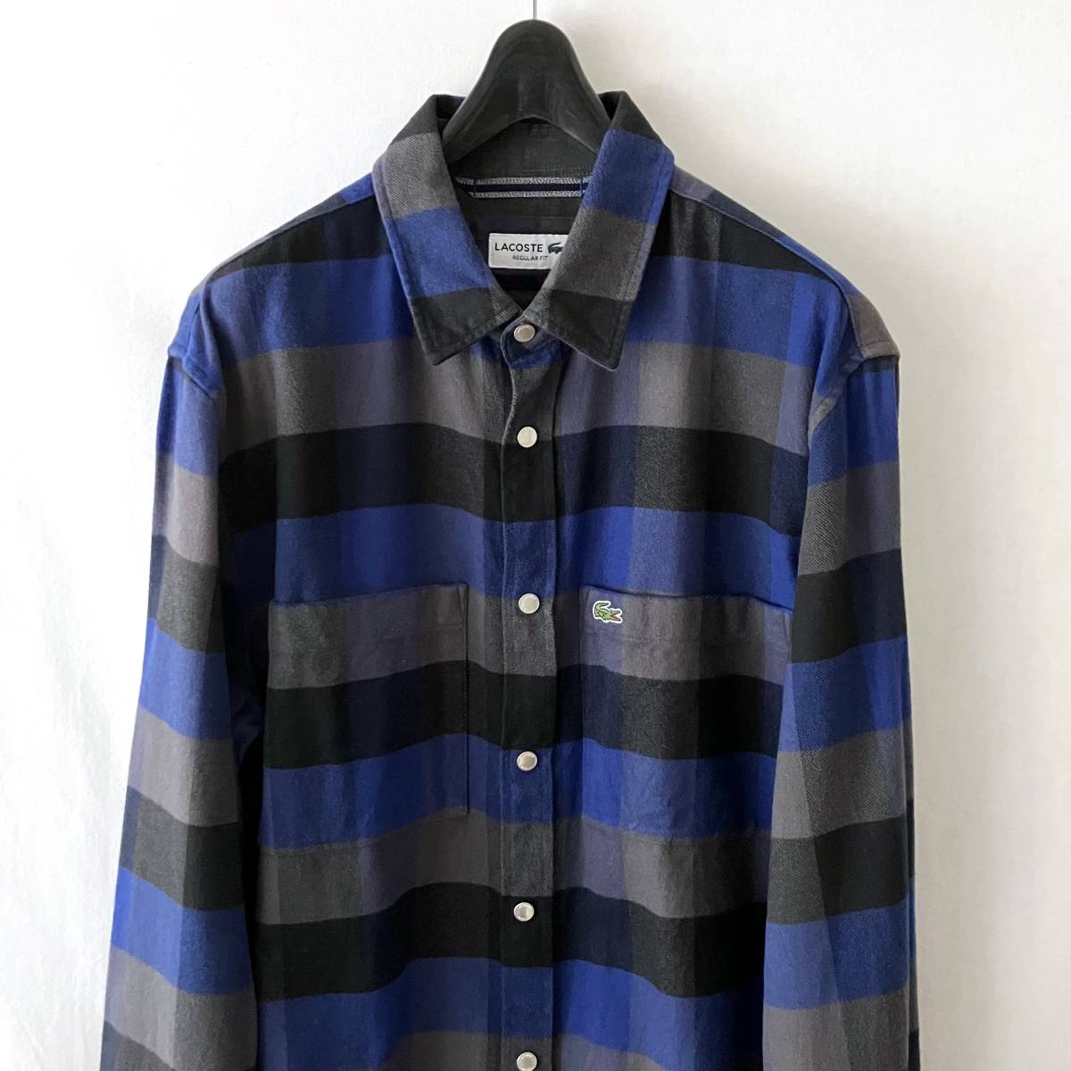 ラコステのビッグチェック 長袖 コットンシャツです。