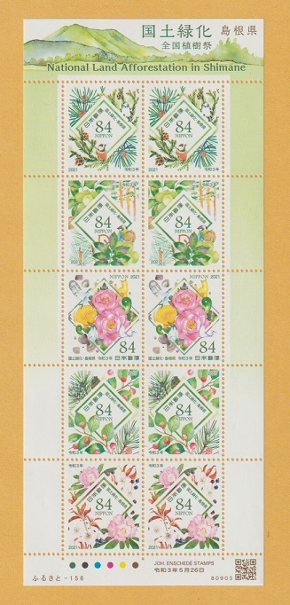 ●【記念切手】ふるさと切手《84円》 国土緑化:島根県 切手シート 2021年  未使用