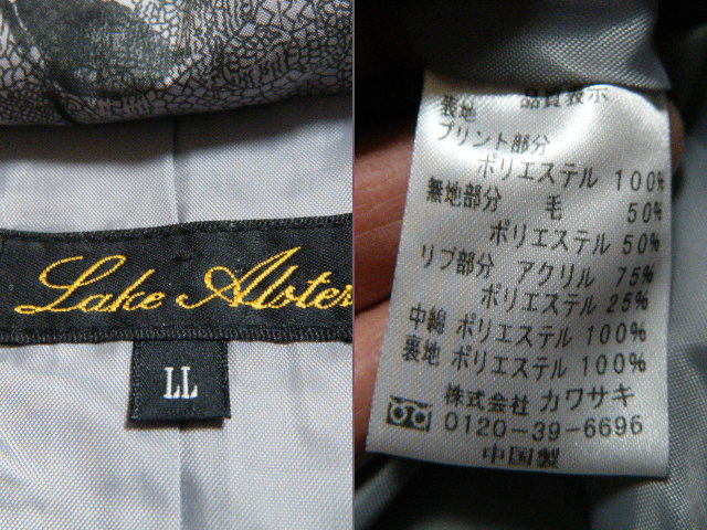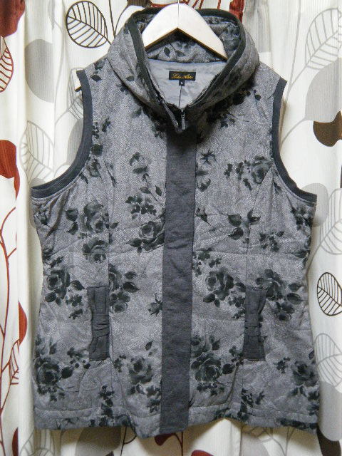 Lake Alster 薄中綿ベスト サイズLL R7833 グレーバラ柄 ジップ