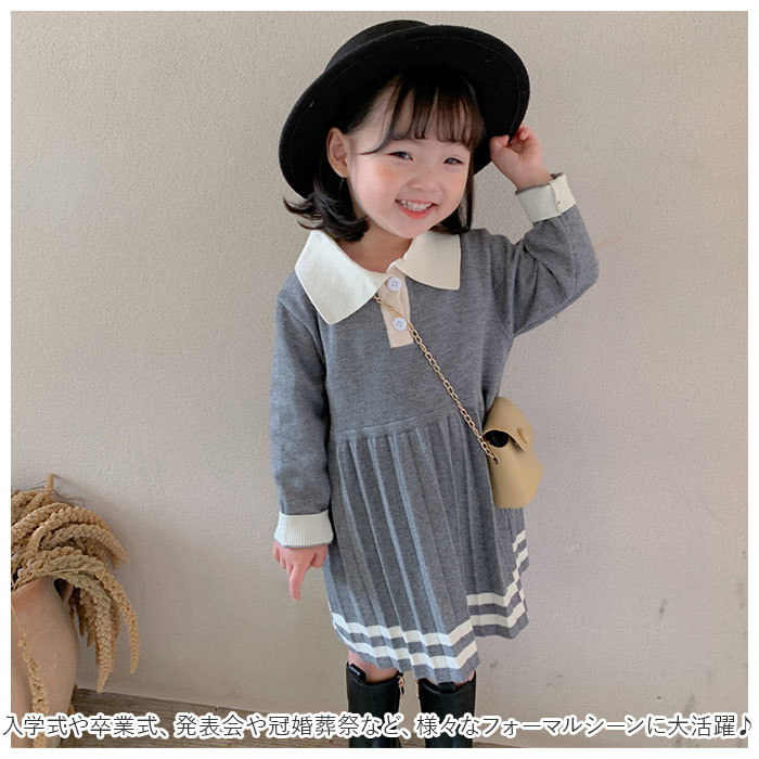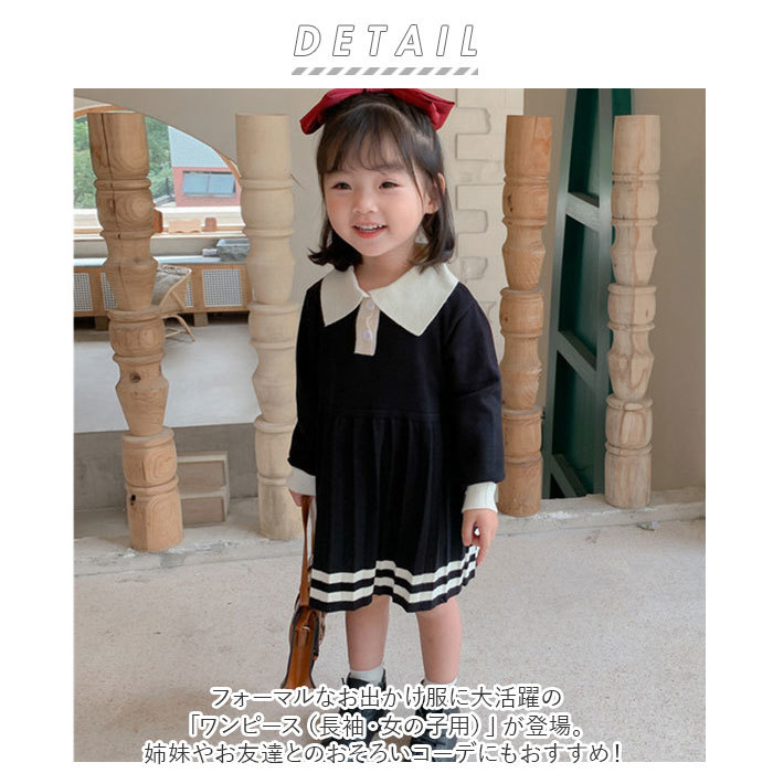 商品説明 | ・・フォーマルなお出かけ服に大活躍の「ワンピース(長袖・女の子用)」が登場。 ・大きなポロ襟とラインが入ったスカート部分のプリーツとの組み合わせが、キュートでエレガント。入学式や卒業式、発表会や冠婚葬祭など、様々なフォーマルシーンに大活躍♪ ・ニット素材なのでストレッチ性があり動きやすく、大きめのボタンで着脱しやすいのもポイント。 ・シンプルなデザインなので、お手持ちの帽子やバックとコーデしやすい。 ・やや厚手でハリのある素材なので、秋口から春先までのロングシーズンOK。 ・姉妹やお友達とのおそろいコーデにもおすすめ! |