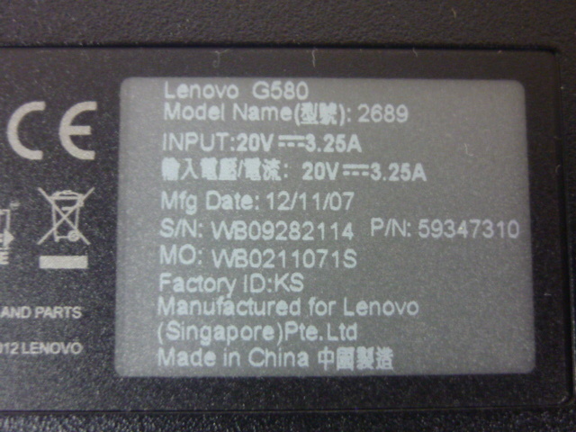 送料無料/修理交換部品 ■ ノートPC用 バックパネル/lenovo G580より取外し品(管6012511)