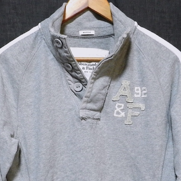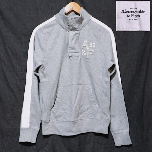 アバクロンビー&フィッチ Abercrombie&Fitch ハイネック ヘンリーネック プルオーバー スエット パーカー リバースウィーブ グレー S 美品