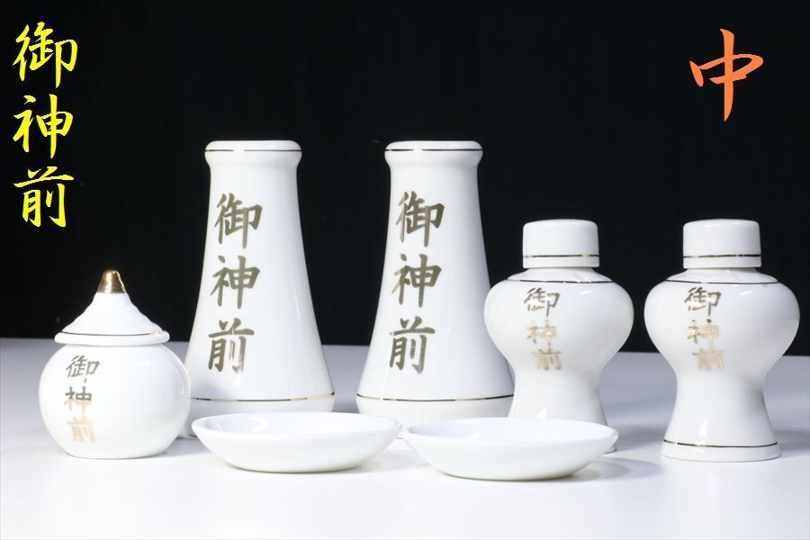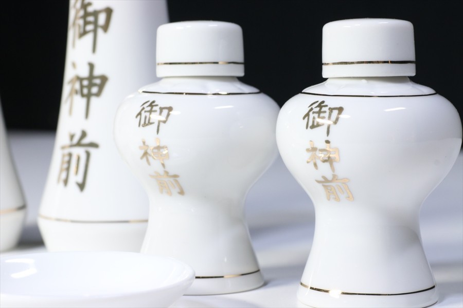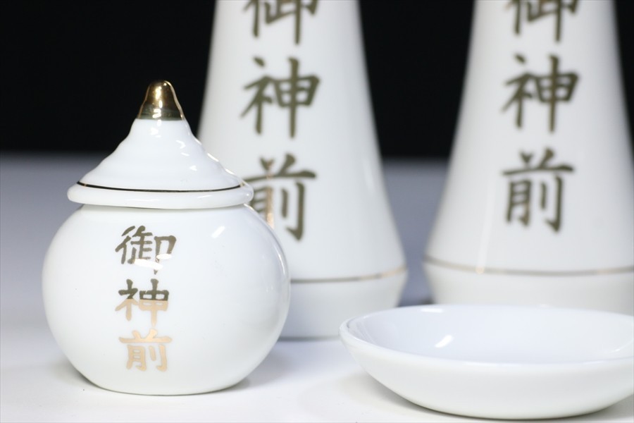 | なめらかな質感と光沢、国産「せともの」陶器製の御神前金文字入り神具7点セット。お祀りに必要な榊立、、平次、水玉、皿、がすべて揃っています。中型~大型の神棚に最適なサイズとなっています。 ■セット内容 ・榊立 3.5寸×2 ・平次 2.5寸×2 ・水玉 1.5寸×1 ・皿 2寸×2 | |||