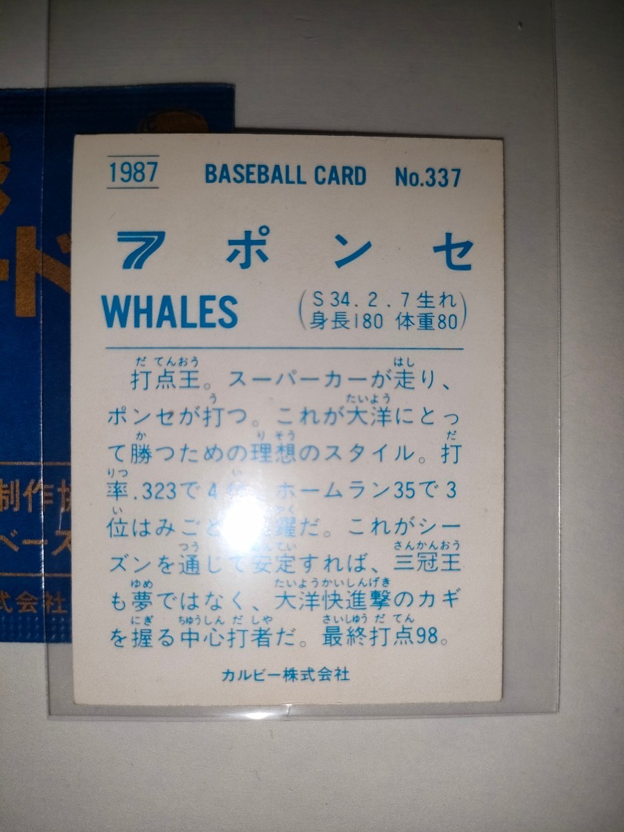 ポンセ 87 カルビープロ野球チップス 金枠 No.337 大洋ホエールズ