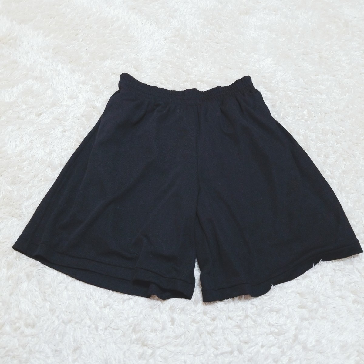 送料無料★美品★Y1305 ウエストゴム イージーパーツ キュロット ショートパンツ ストレッチ レディース M ブラック 黒 無地 薄手