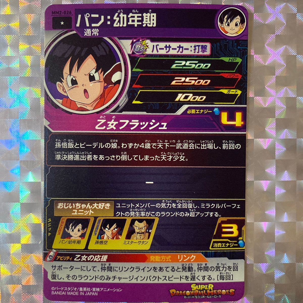 MM2弾コモン/ パン:幼年期(通常)/ MM2-026/ 技:乙女フラッシュ/ スーパードラゴンボールヒーローズ/ レアリティ:☆/ BANDAI