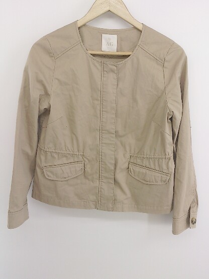 ◇ AG by aquagirl エージー バイ アクアガール 長袖 ノーカラー ジャケット サイズM ベージュ レディース P