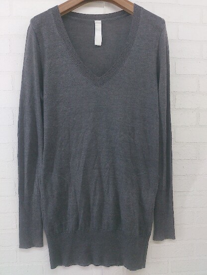 ◇ qualite カリテ Vネック ロング コットンニット 長袖 セーター 表記なし グレー レディース P