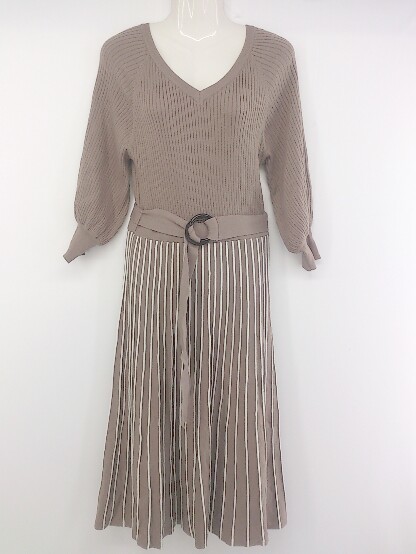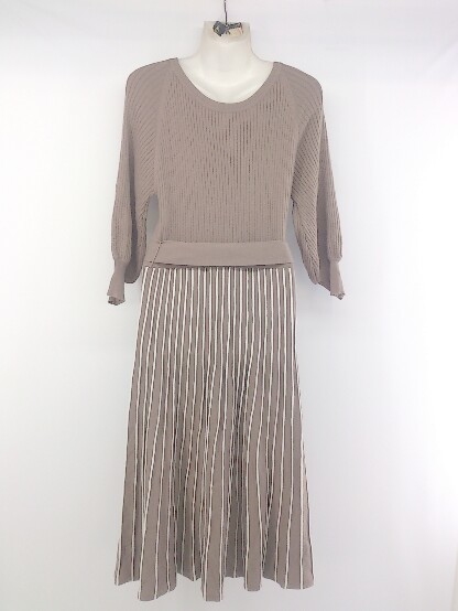 ◇ ◎ natural couture ストライプ 長袖 膝下丈 ワンピース サイズS ベージュ ホワイト系 レディース P