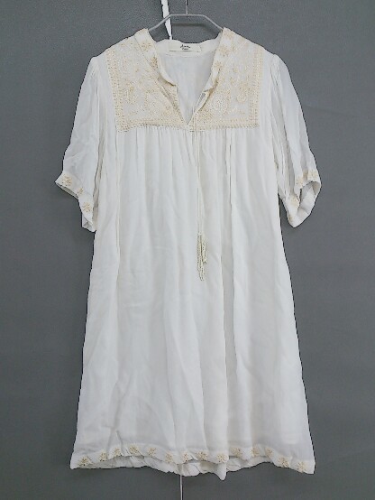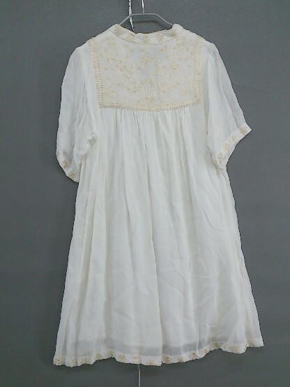 ◇ Another Edition シアー 刺繍 五分袖 チュニック ホワイト ゴールド レディース