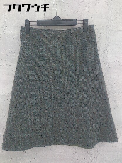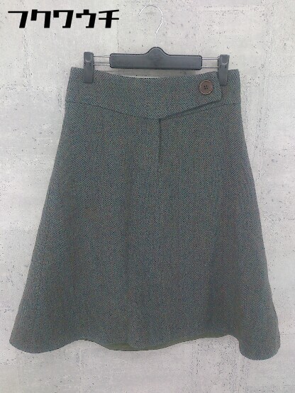 ◇ MACPHEE TOMORROWLAND トゥモローランド ウール 膝下丈 フレア スカート サイズ36 カーキ マルチ レディース