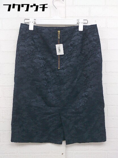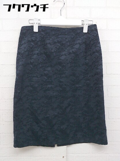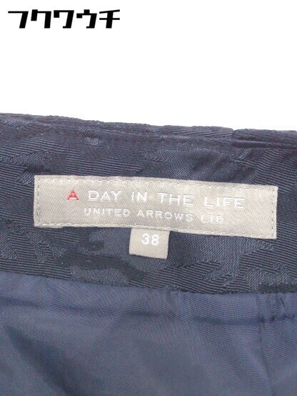 ◇ A day in the life UNITED ARROWS 総柄 膝丈 台形 スカート サイズ38 ネイビー レディース