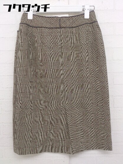 ◇ NEWYORKER ニューヨーカー チェック 膝丈 タイト ナロー スカート サイズ7 ブラウン系 レディース